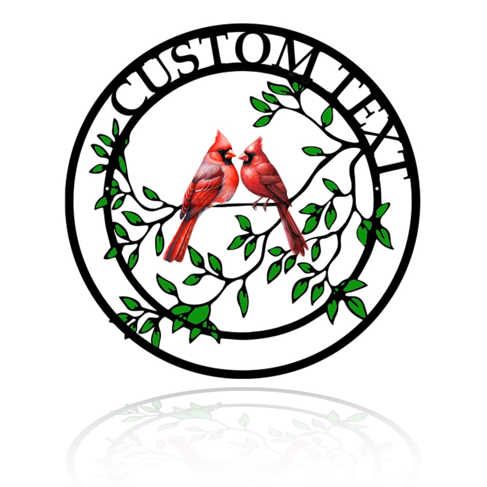 Personalized Name Garden Cardinal Metal Signs, Custom Family Name Outdoor Indoor Wall Decorations, Wall Art for Mom Sister Grandma Dad, Housewarming Gift Birthday Retirement