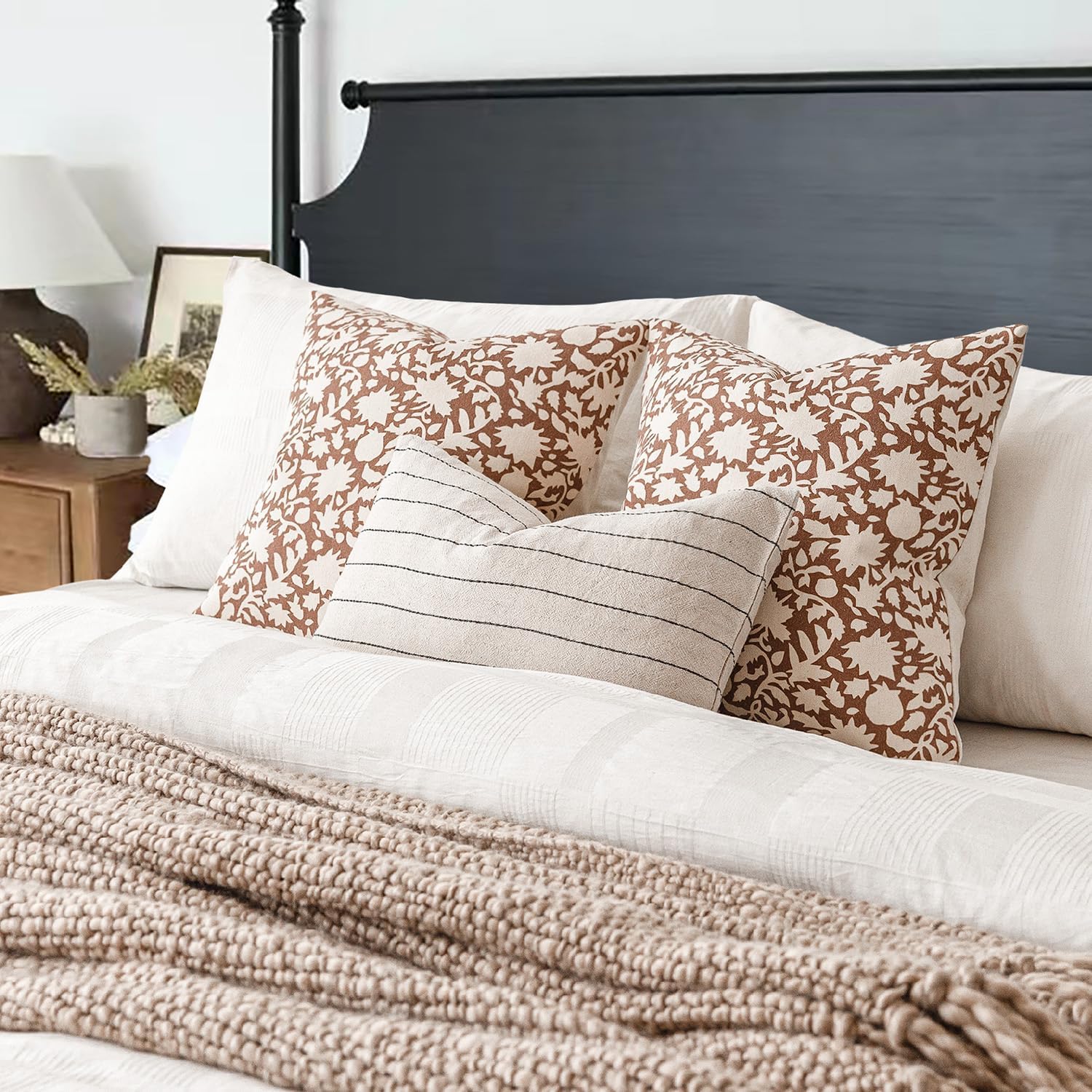 Foindtower Set of 2 Decorative Neutral Floral Throw Pillow Covers Accent Farmhouse Cushion Covers Boho Pillowcase for Couch Sofa Bedroom Living Room Home Decor Outdoor,12×20 Inch,Light Orange Brown