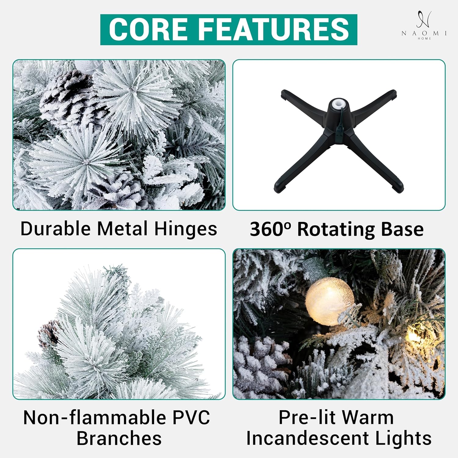 Naomi Home Darla Snowy Christmas Tree 4.5ft/Snow Flocked