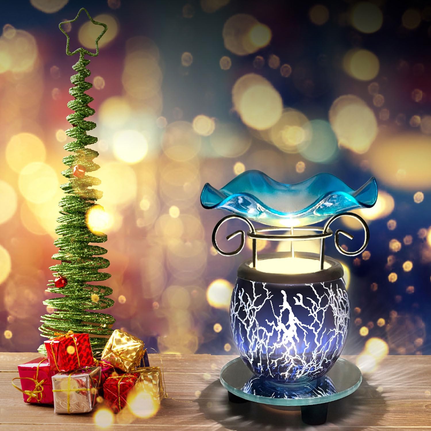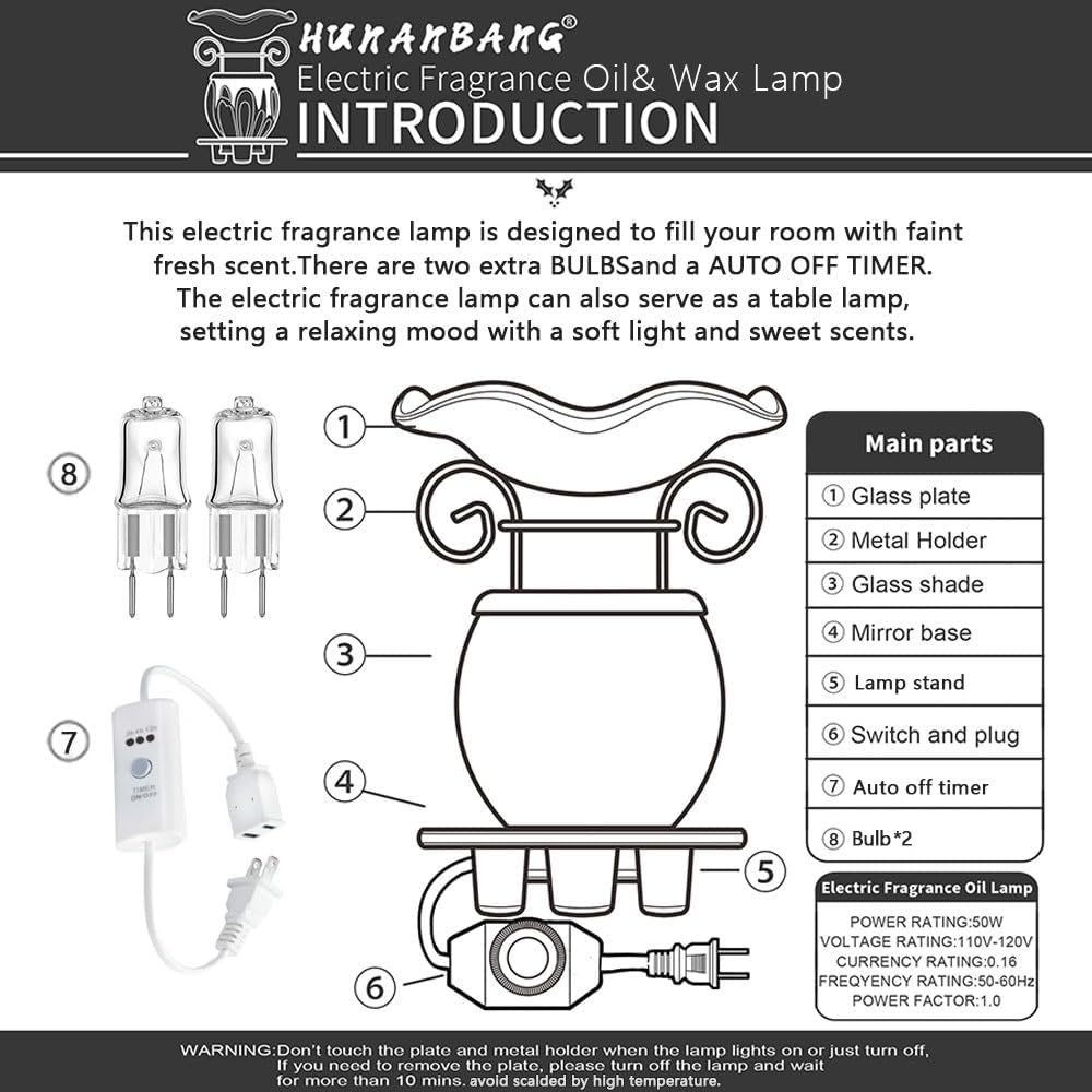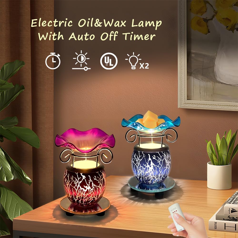 HUNANBANG Electric Oil Warmer Scented Wax Warmer with Auto Off Timer Candle Wax Melt Warmer Wax Melter Fragrance Wax Burner (Lightning-Blue)