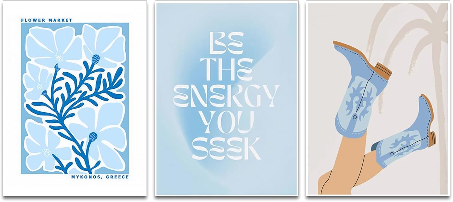 • Boho, Y2K, and Vintage Style Fusion: With elements of boho, Y2K, and vintage coastal prints, this set effortlessly blends several popular styles. The modern floral and nature-inspired designs give your room a refreshing, girly touch, while the blue tones and light aesthetic create a calm, beachy atmosphere.