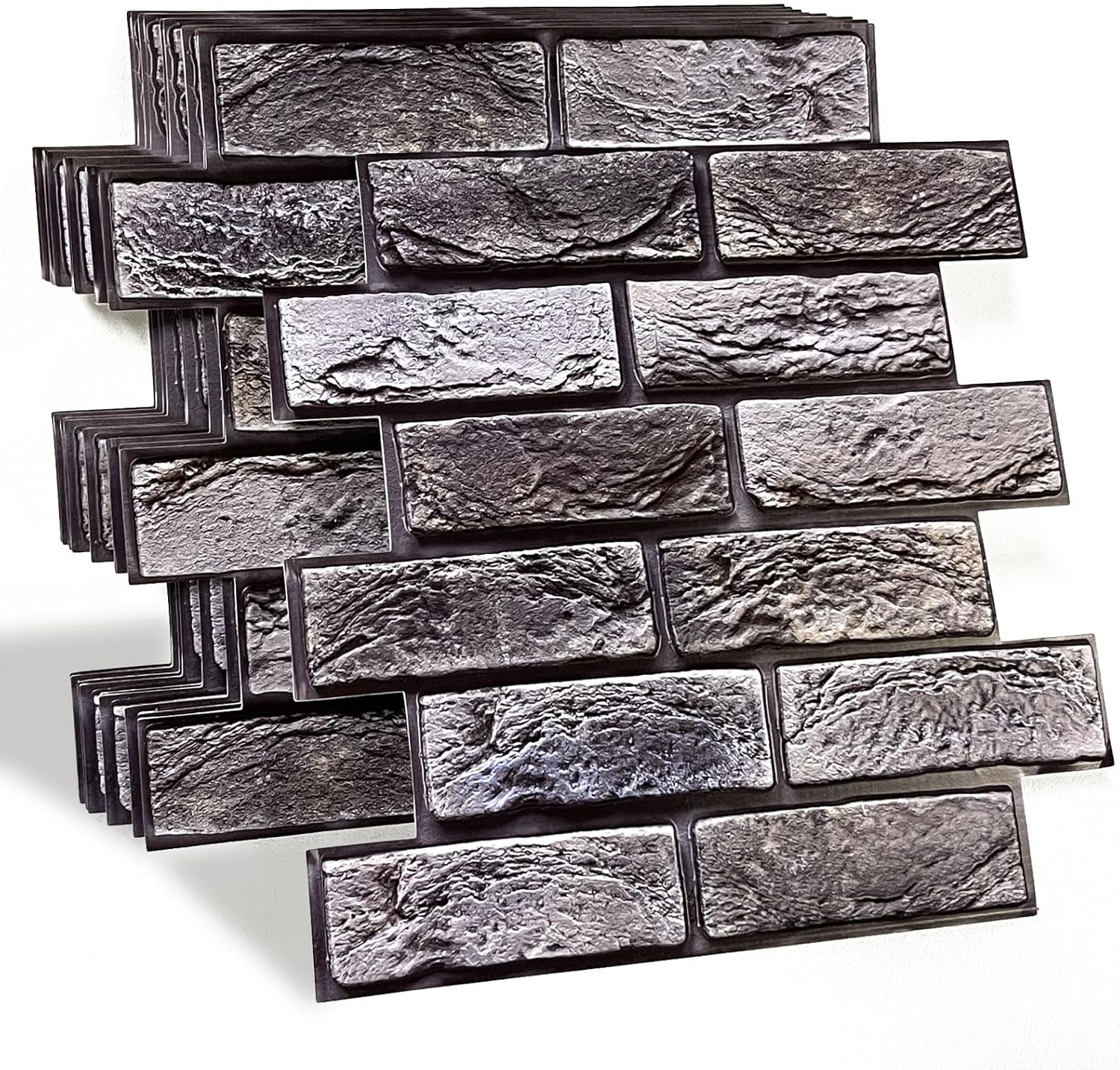 • REALISTIC 3D BRICK DESIGN: featuring a vintage brick pattern with 3D visual effects and texture, these faux brick wall panels add a retro aesthetic that instantly enhances the style and atmosphere of any room,(Note: The individual brick is smaller than actual brick, Size 4.8" x 1.7".)