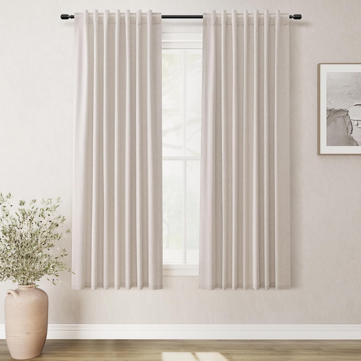 • 3 Hanging Options: Differ from the traditional curtains with grommet, BOODII linen curtains with back tab and rod pocket can full block sunlight fully. (1) Using the back tabs design to create an elegant pleated look and sit closer to the wall than traditional ring curtains, which helps to block out more sunlight; (2) Using rod pocket for a classic effect; (3) Using clip rings on track system or curtain rod, slide open/closed easily (clip rings are not included).