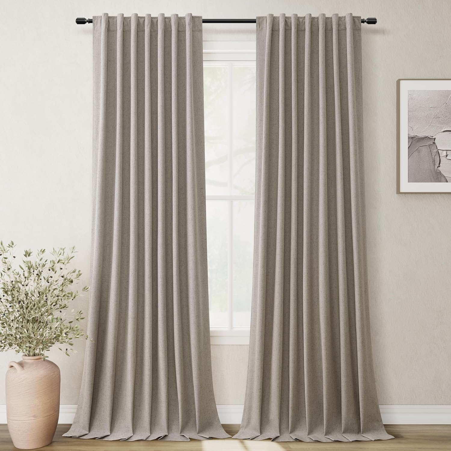 BOODII Room Darkening Curtains 120 Inch Back Tab Thermal Insulated Black Out Linen Drapes Extra Long Blackout Curtains for Patio Door Large Window Ceiling to Floor Light Blocking Dark Taupe 52x120