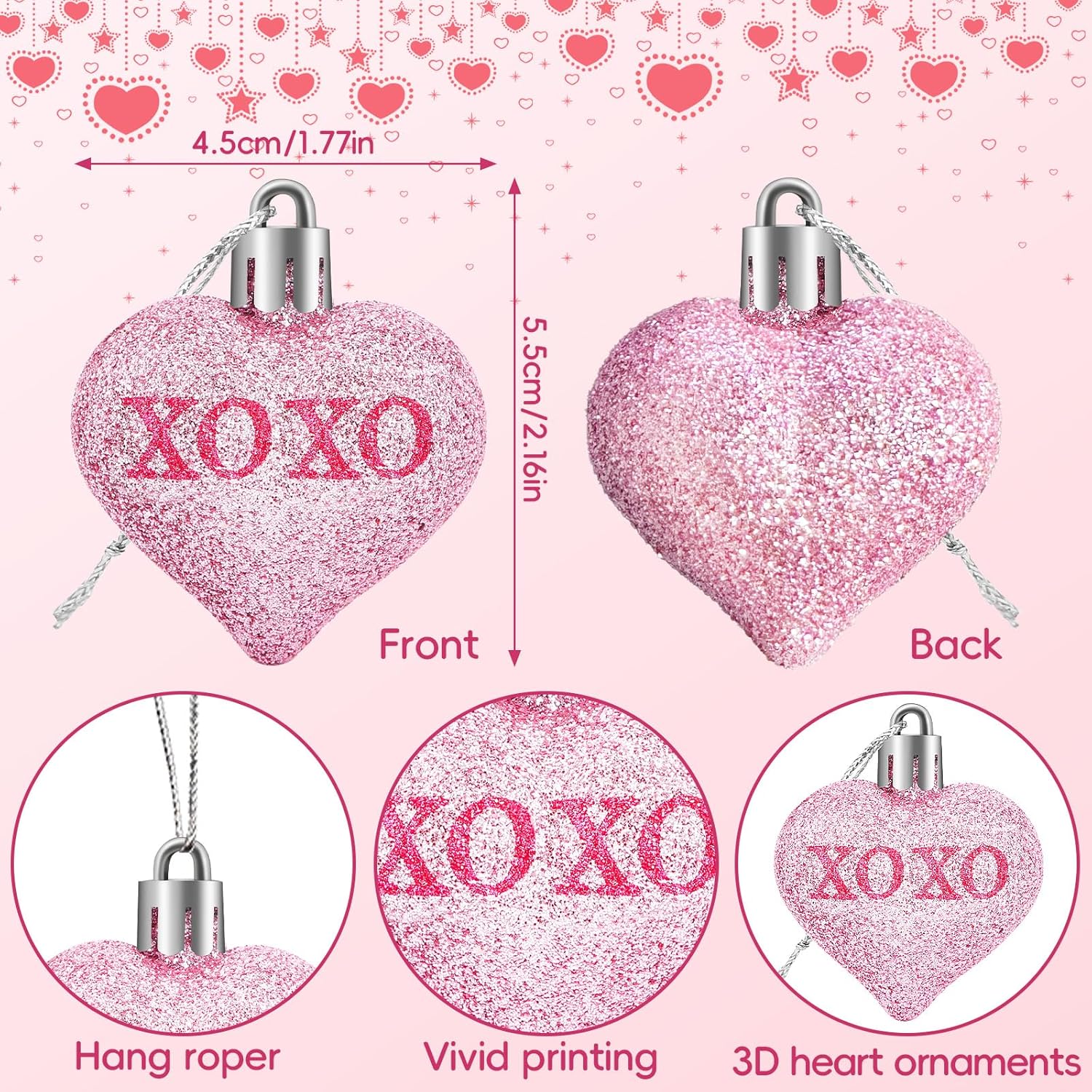 • Valentine's Day Heart-Shaped Ornaments: Package includes 24 pieces 3D Valentine's Day heart shaped ornaments in red, pink, rose gold and silver. The size of each Valentine's Day ornaments is 1.77x1.77 inches. As an ideal decoration for outdoor and indoor parties, Valentines heart decorations add sweet and romantic color to your life