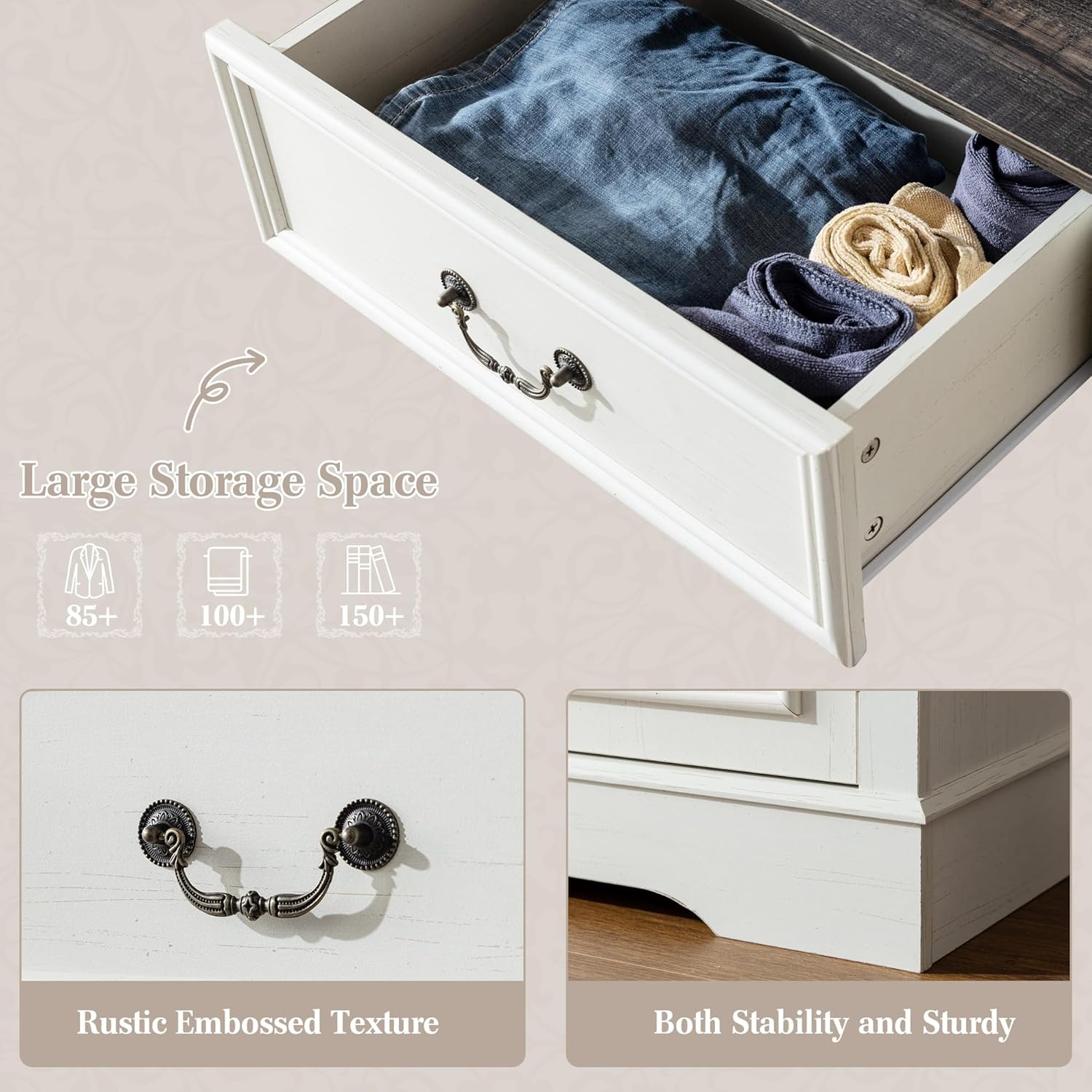 • [Multifunction white dresser for bedroom with storage organizer]: This wood dresser is ideal for wherever to save you from clutter and keep your space neat and tidy, such as the bedroom,closet, dorm, living room,dining room entryway and matches well with other bedroom furniture. Its elegant and functional design truly elevates your living space.