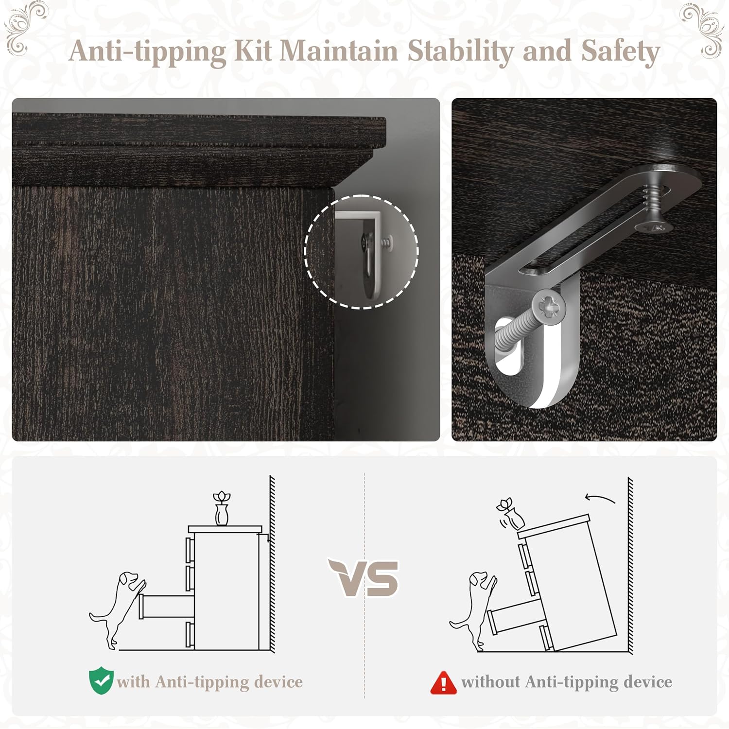 • [Easy assembly]: Includes clear instructions and all necessary hardware for quick setup. Plus, EnHomee dresser with anti-tip kit ensures added safety and security for your family. If you have any issues you meet, let us know without hesitation and you will get a satisfactory solution.