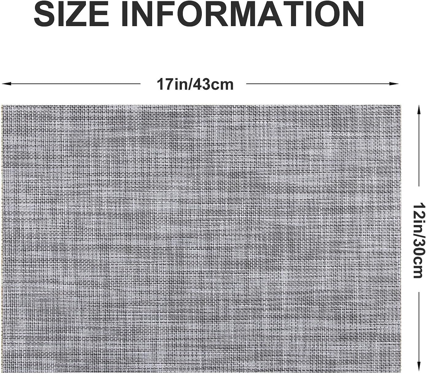 Vinyl Placemats Set of 6, PVC Woven Washable Non-Slip Table Mats, Heat Resistant Wrinkle Free Place Mats for Dining Table, Easy to Clean (6, Light Grey)