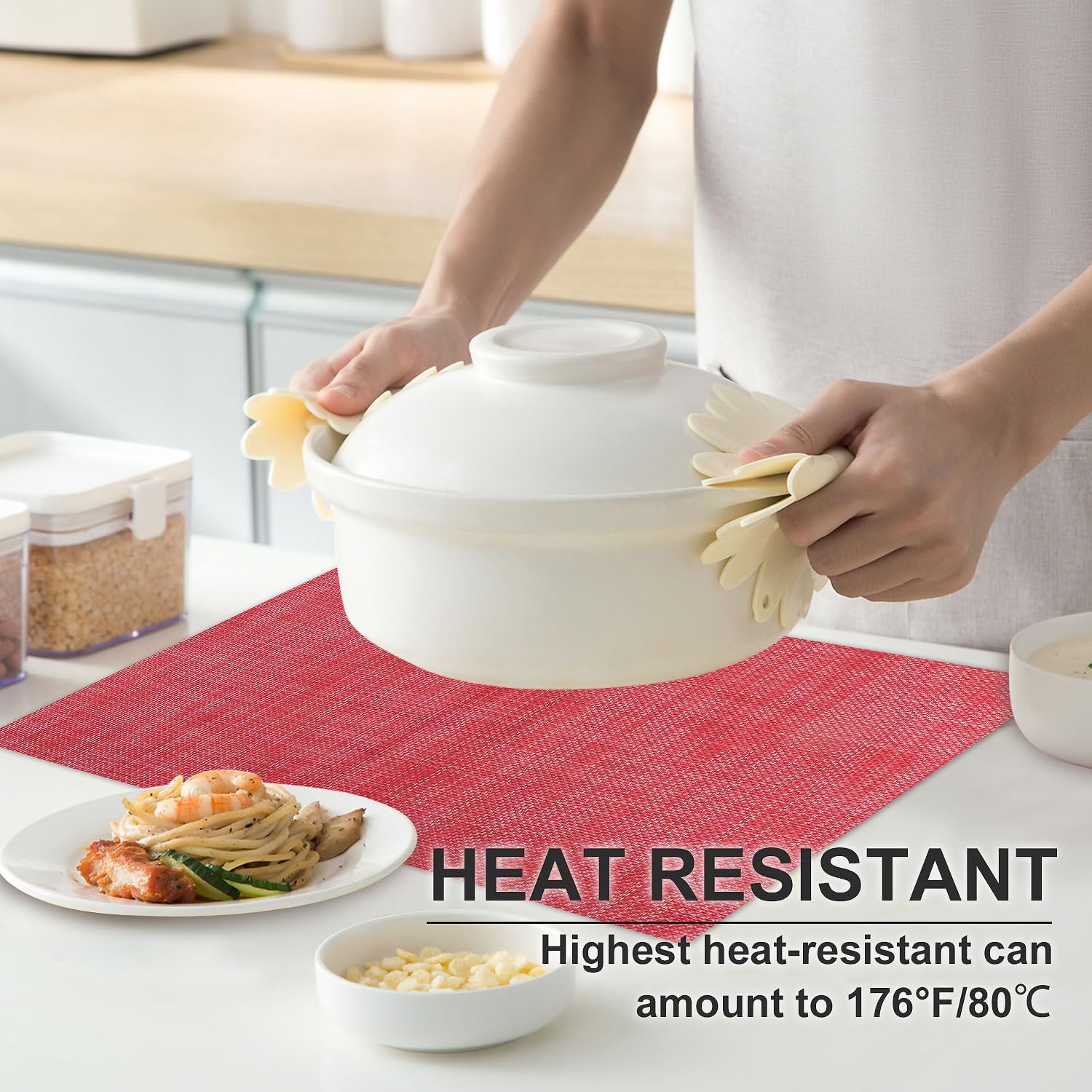 • Heat Resistant: Highest heat-resistant can amount to 176°F/80℃, they perfectly protect your table from food and heat. Add style to your dining setting while ensuring table protection. NOT waterproof