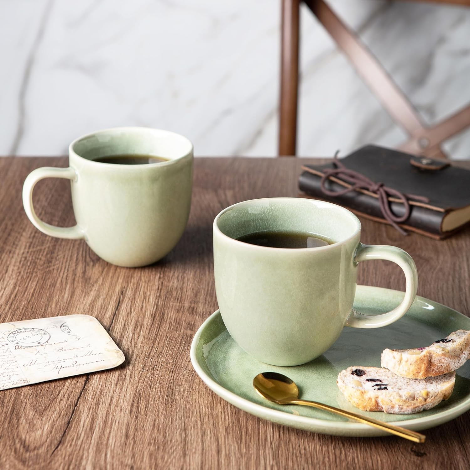 • UNIQUE DESIGN: Our mugs feature a hand-finished reactive glaze that creates a beautiful, one-of-a-kind look. The color variations add to the charm and character of each piece, making them a stunning addition to any kitchen or dining room.