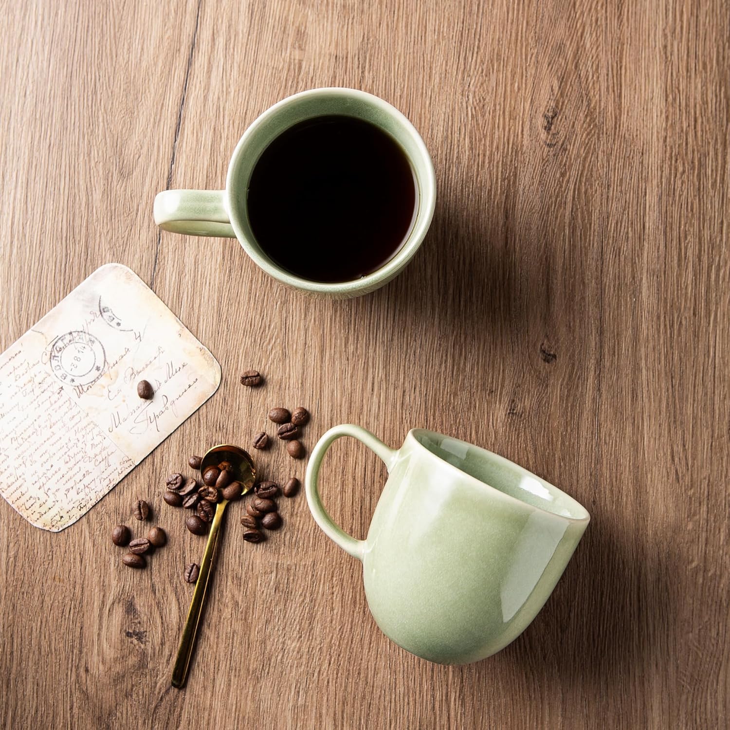 AmorArc 12oz Coffee Mugs, Ceramic Coffee Mugs set of 6 for Man, Woman, Dad, Mom, Modern Coffee Mugs with handle for Latte/Cappuccino/Milk/Cocoa. Dishwasher&Microwave Safe, Olive Green