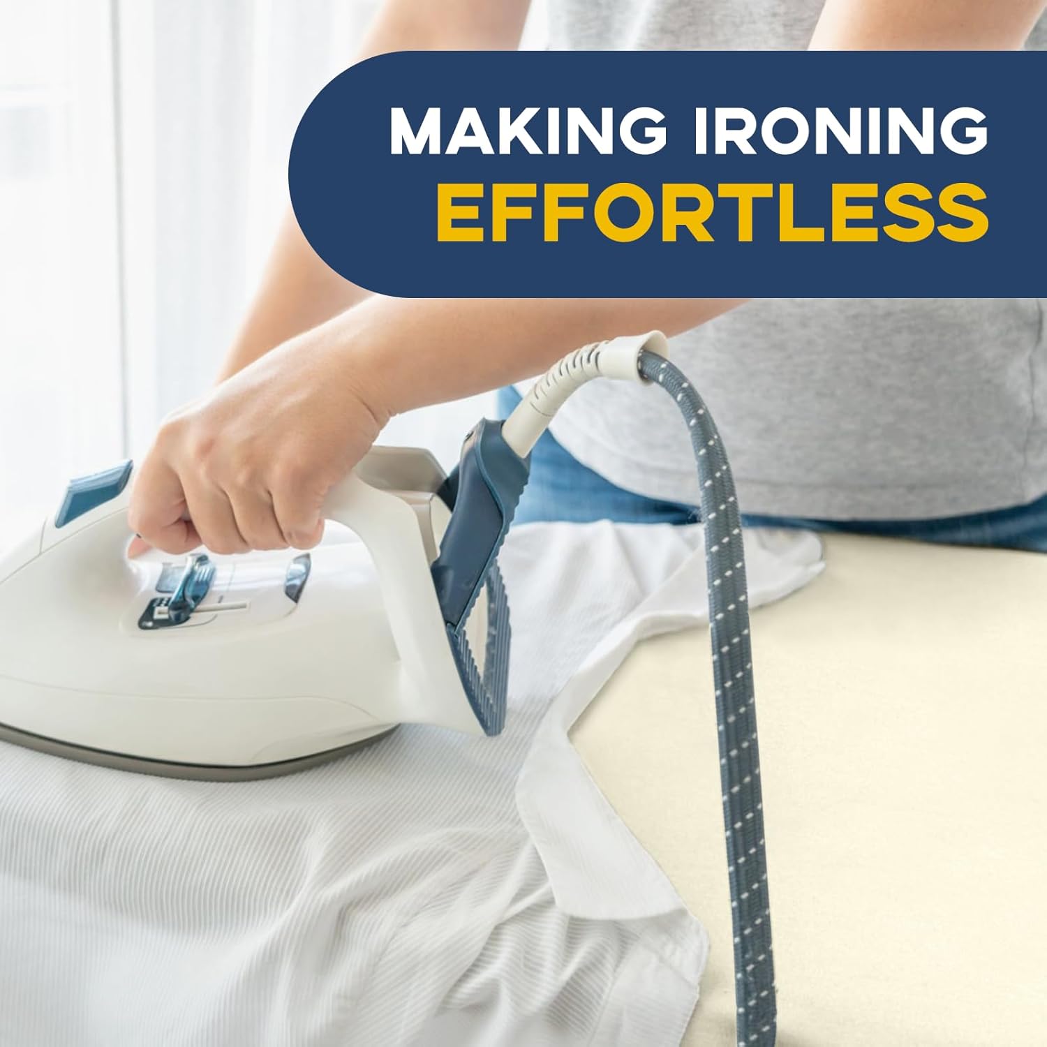 • Heat-resistant Cover: The ironing board cover is a 100% cotton cloth cover. It's removable, washable, and reusable, and it comes with two layers of 7mm thick pads made of fireproof fabric. The extra thick cloth cover ensures you an extraordinary ironing experience.
