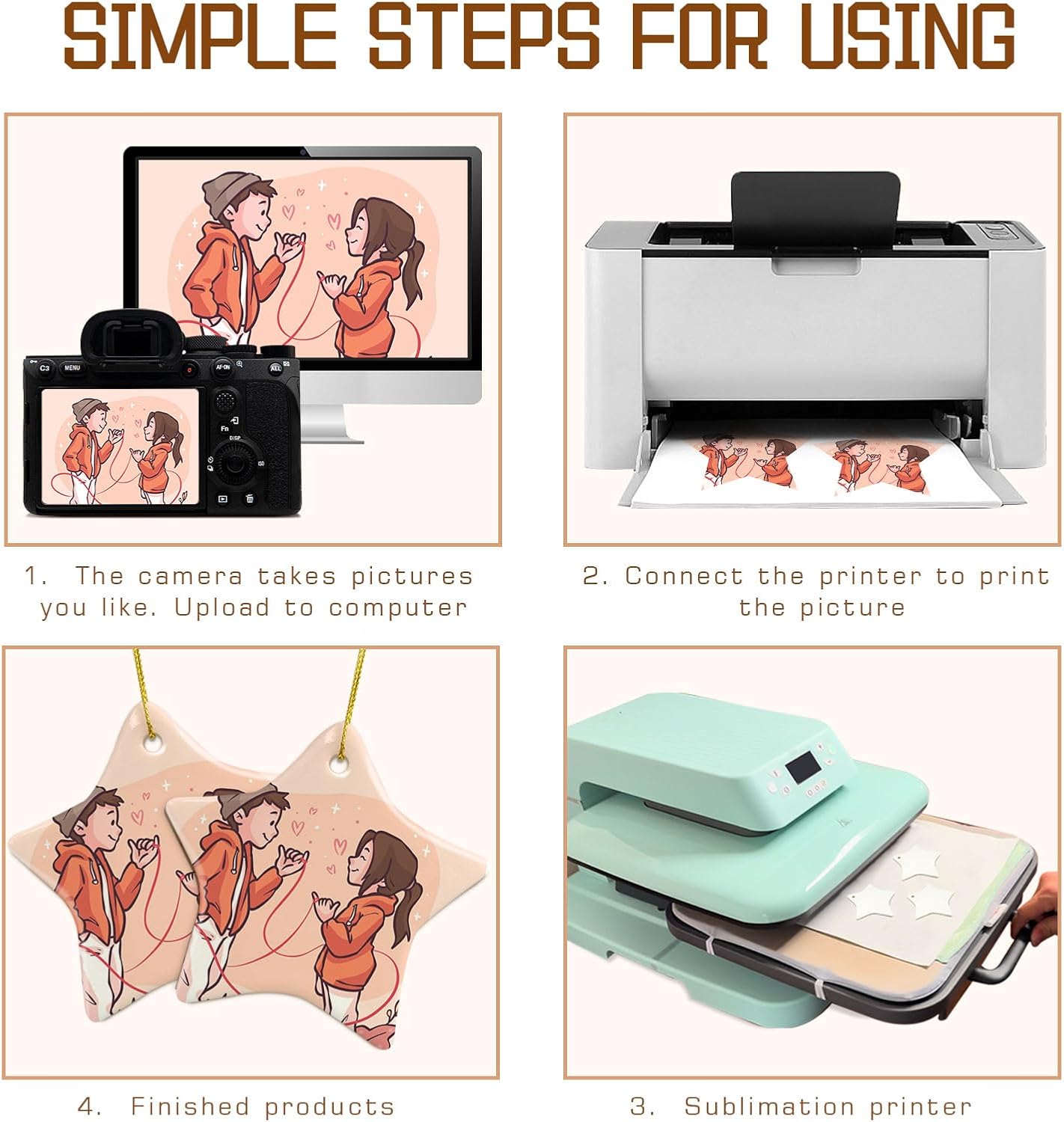 • Sublimation Blanks Products - Each sublimated star ornaments measures 3.12 inches. Thickness 0.13 inches, each piece comes with a gold string.