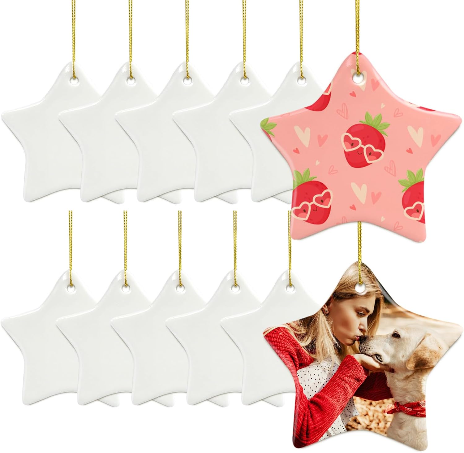 Sublimation Ceramic Ornament Blanks - Bulk White Porcelain Ornament for Heat Press Printing - Personalized Christmas Decoration Supplies (12 Stars)