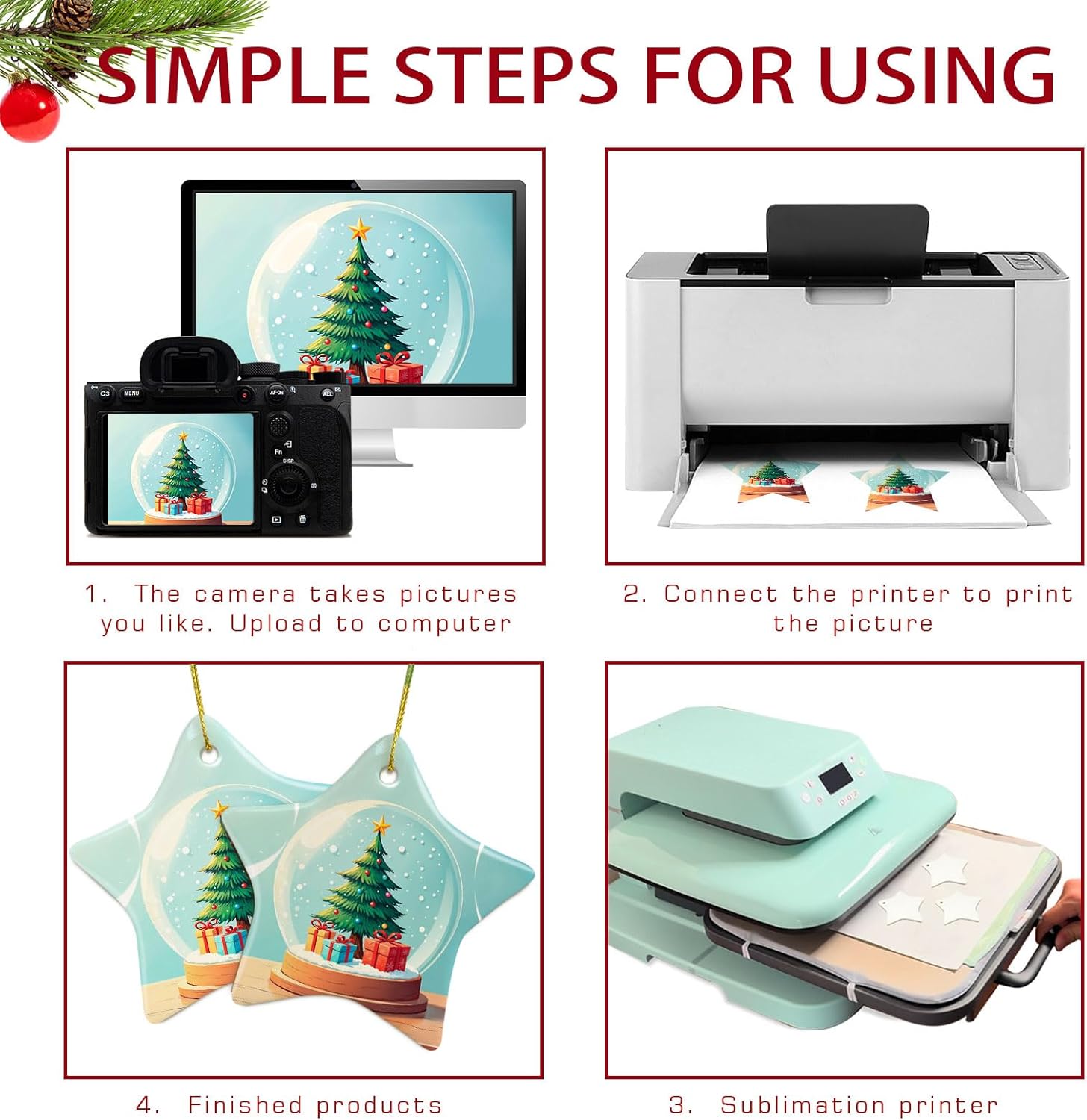 • Clear Patterns Christmas Ornaments:Sublimation ornaments blanks have high quality sublimation coating on both sides of the surface, which can present excellent sublimation effect with bright colors and clear patterns. Sublimation Parameter Reference, temperature: 360℉, suggested time: 250 S, suitable for sublimation printing by heat press machine.