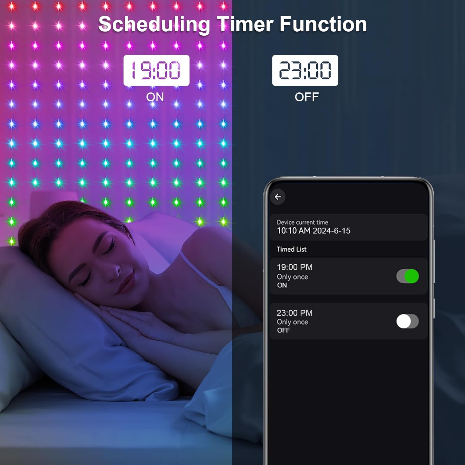 • Voice Control: Easily control the curtain lights ON/ OFF, brightness, and color changing with Alexa, Google Assistant. Enjoy hands-free control to create a smart lifestyle