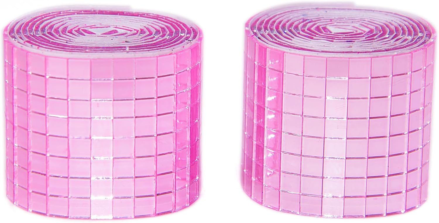 Pink Self-Adhesive Glass Mirror Mosaic Tiles, 5 x 5 mm Square Mirror Tiles, 3200 Pieces Disco Ball Tiles for DIY Craft, 2 Rolls Disco Mirror Tiles for Interior, Art Collage, Card Making, Cups