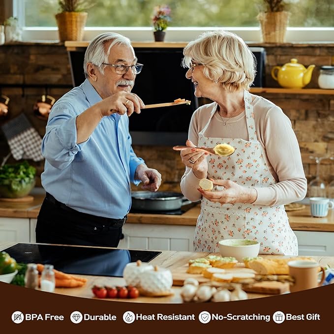 • Heat-Resistant and Non-Stick: These utensils are designed with heat resistance in mind, making them perfect for use in high-temperature cooking. The smooth surfaces of the wooden spoons ensure they won’t scratch or damage your cookware’s non-stick coating