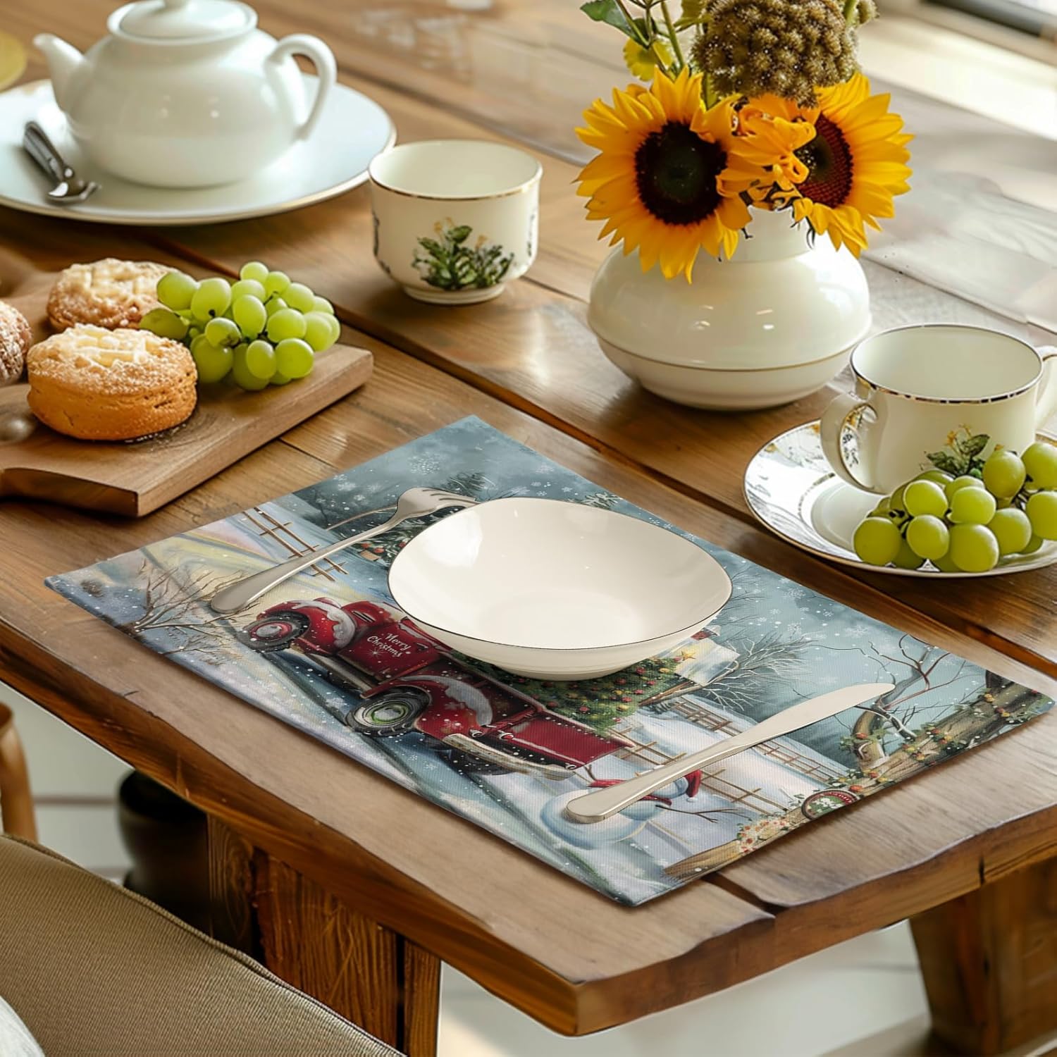 • PERFECTLY SIZE: The Christmas kitchen placemats set of 4, Each Christmas red truck place mat is 18脳12 inch (45cmx30cm) that can exactly fits your needs to use in all kinds of situations