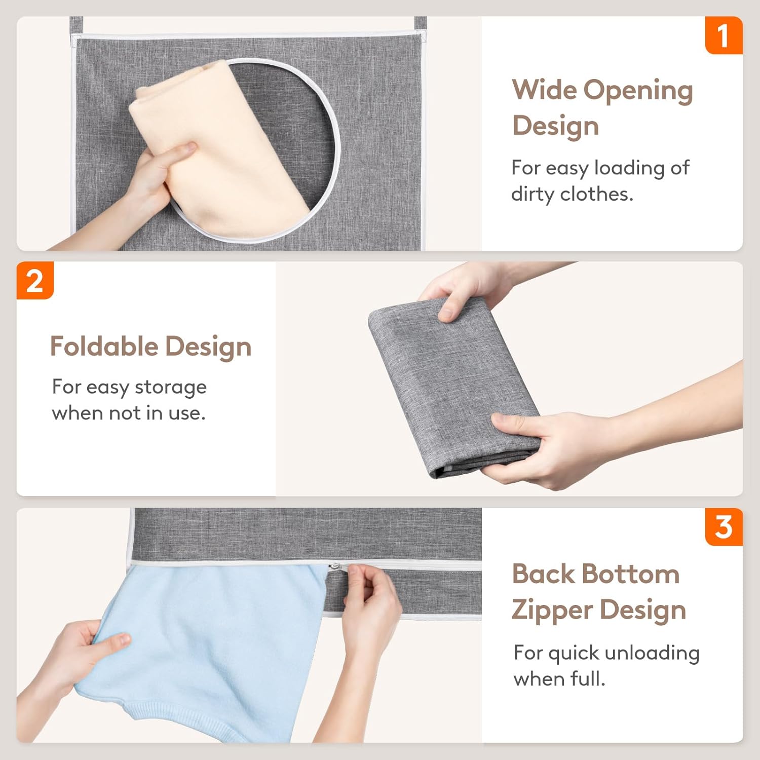 • Easy to Use: The over the door hamper for bathroom features a wide opening design for easy loading of dirty clothes and a smooth zipper at the back bottom for quick unloading when full. Folds up for storage when not in use.
