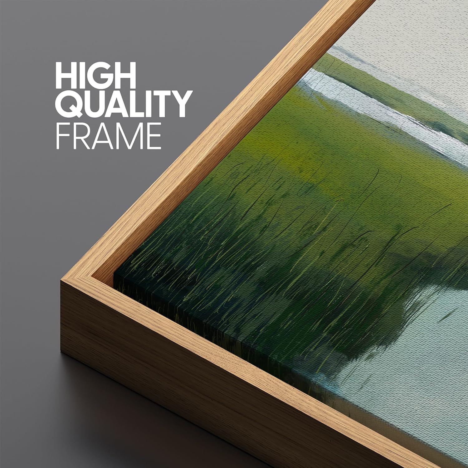 MUDECOR Large Framed Canvas Print Wall Art Serene Marshland Landscape Green and Blue Peaceful Illustrations Antique Retro Fine Art Illustrations Decorative Colorful for Bedroom - 60"x20"