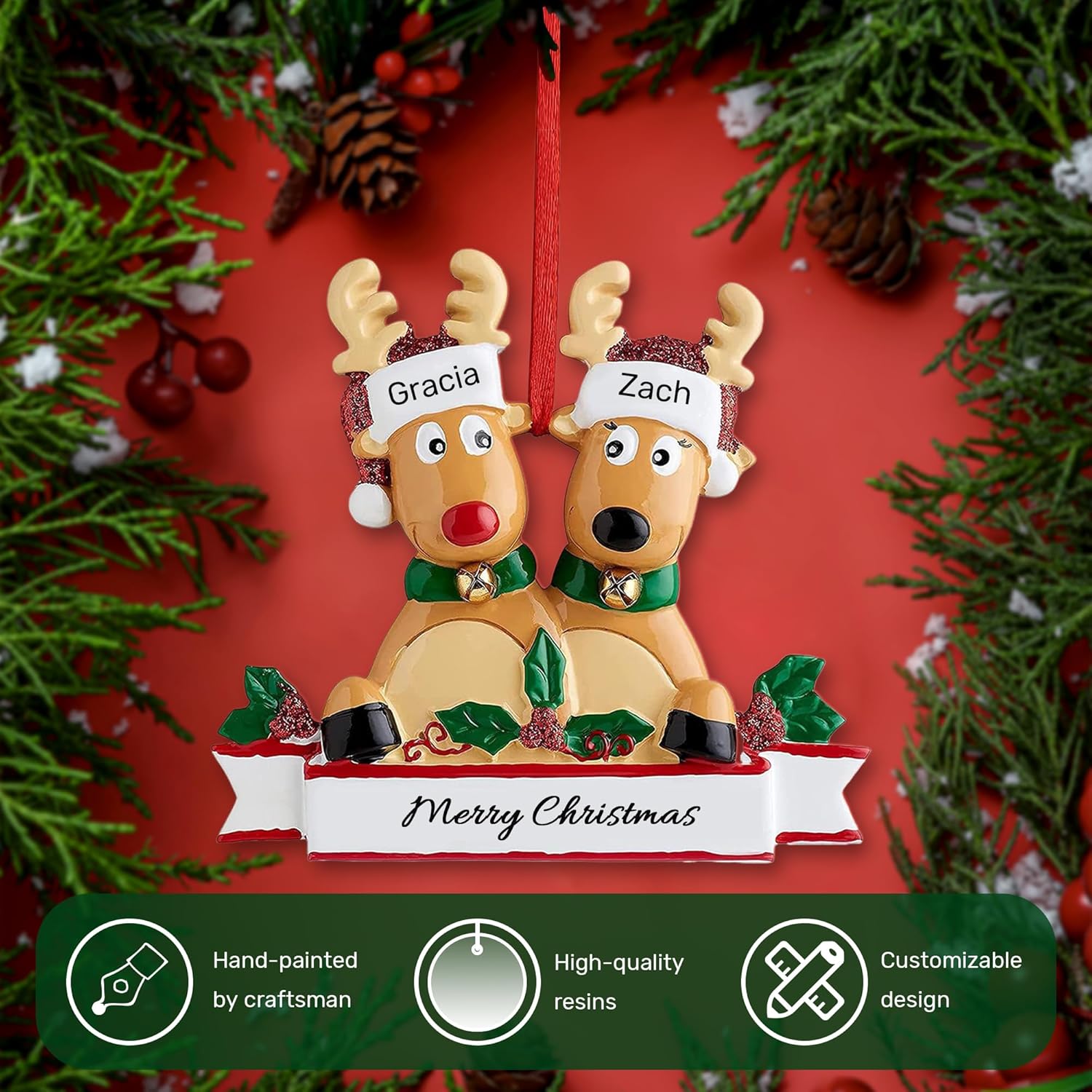 Personalized Christmas Ornaments 2025, Custom Reindeer Family Ornaments for Trees with Names, Handcrafted Christmas Deer Decorations for 2-8 Members, Meaningful Xmas Family of 2