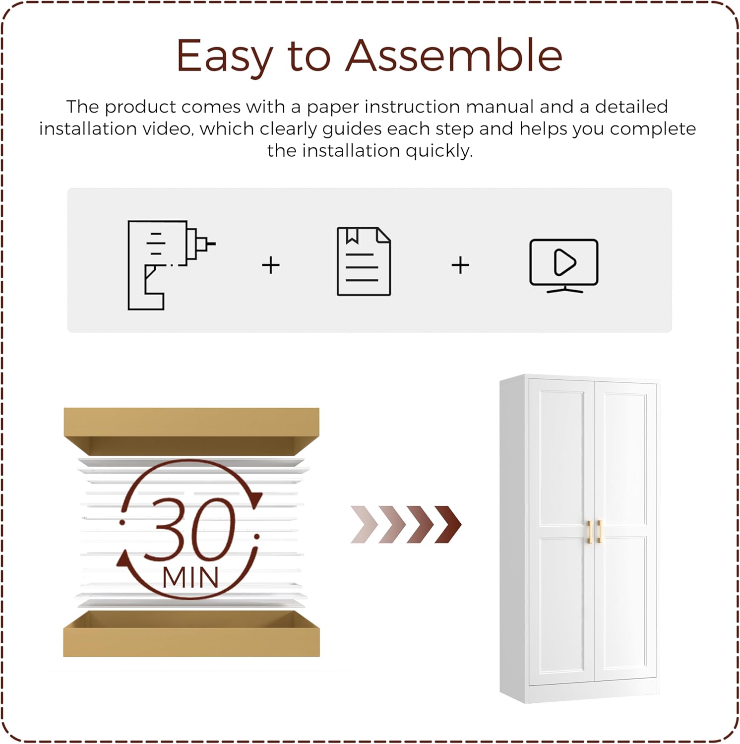 • 【Secure and Stable Design】 For added safety, the white pantry cabinets with doors and shelves includes an anti-tipping device and a wall anchor kit to prevent accidents. This secure design ensures stability, whether used in busy home environments or offices.