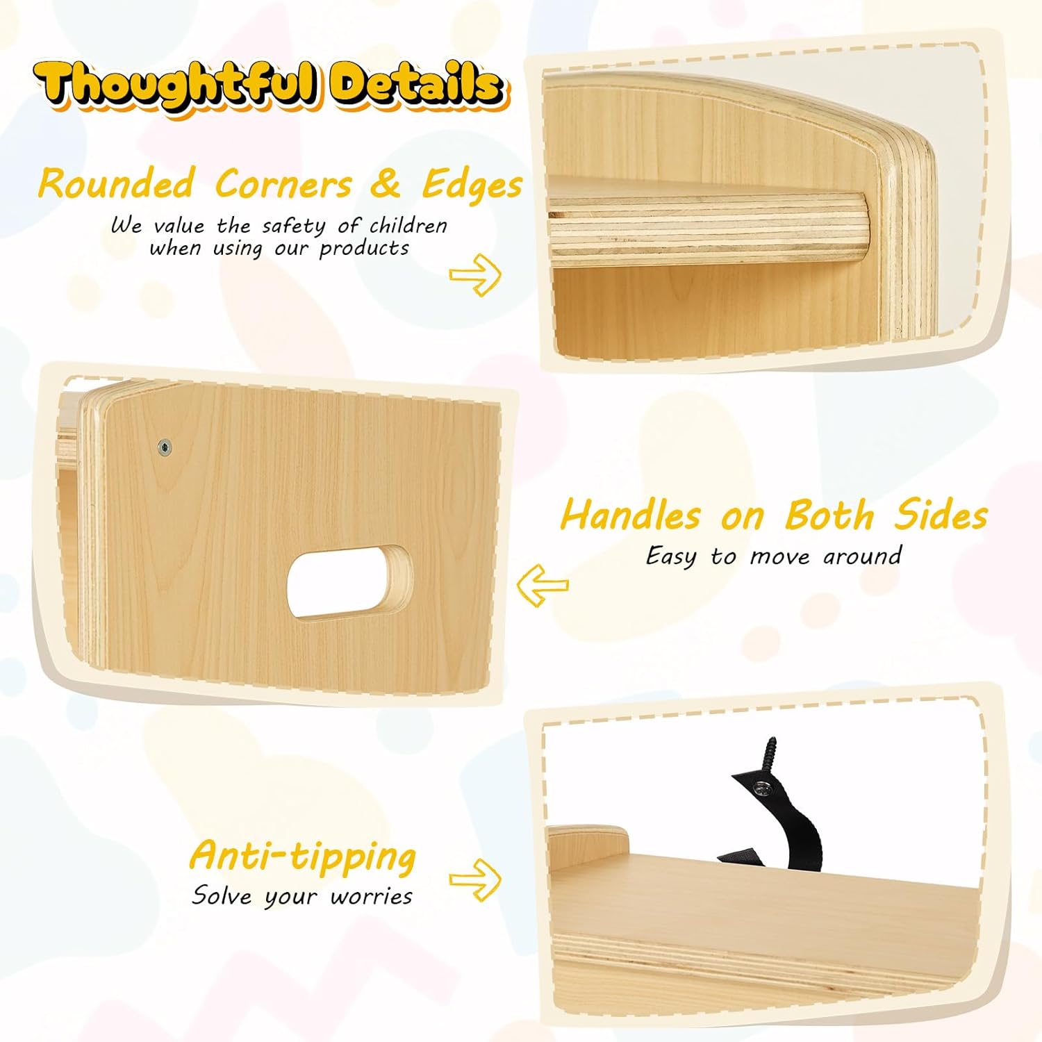 • Designed for kids: With a total height of 23.6", no cabinet door to cover,all things can be seen, kids and even toddlers can easily reach items on the wooden cabinet, fostering good habits of organizing and cleaning. Also,the edges and corners of this cubby are smoothly rounded off and a metal anti-tipping anchor ensure the safety of children when using it