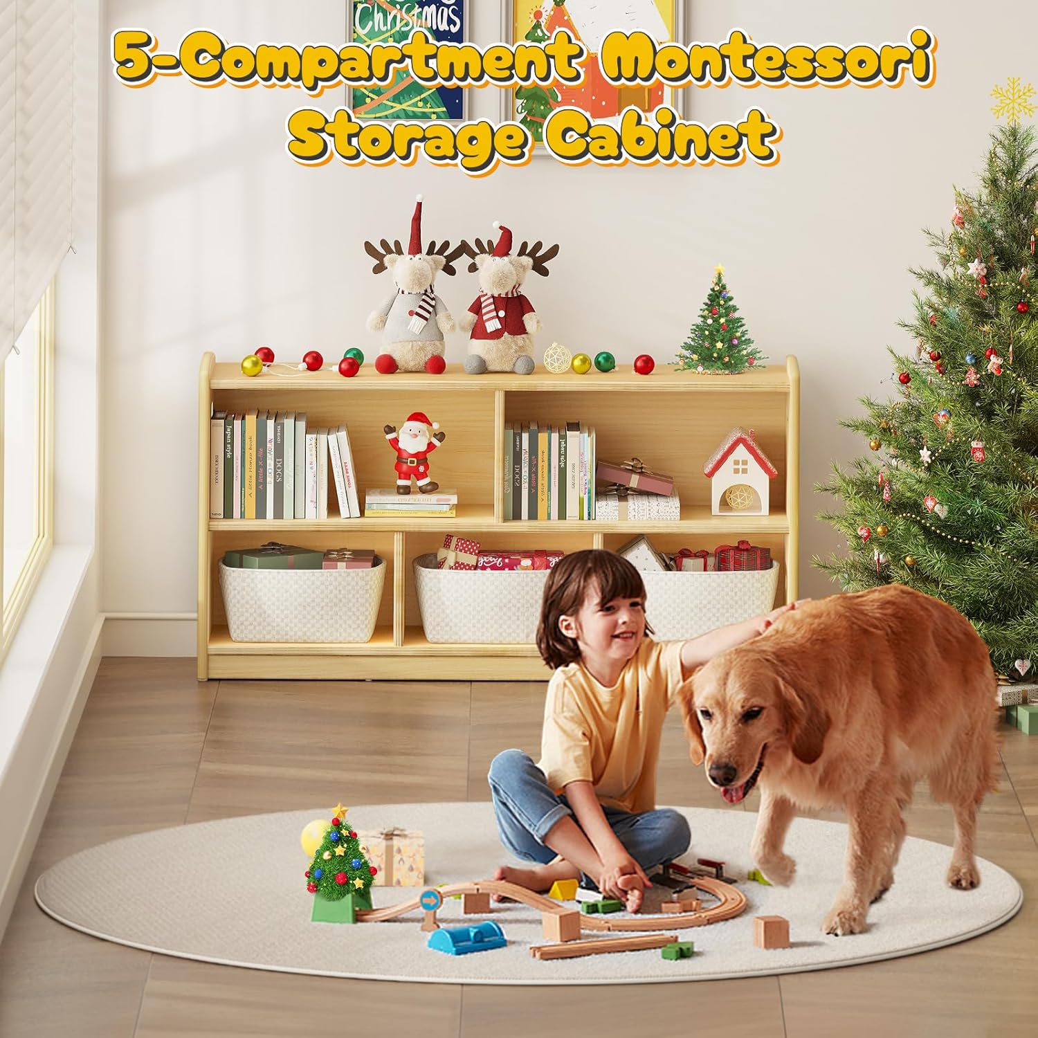 • Ample Storage Space: The wooded montessori shelf is designed with 5 storage compartments of 2-tiers, which can store children's books, toys, school supplies, and storage boxes. The top is very suitable for placing some decorations. Small book shelf can make a messy room tidy and orderly
