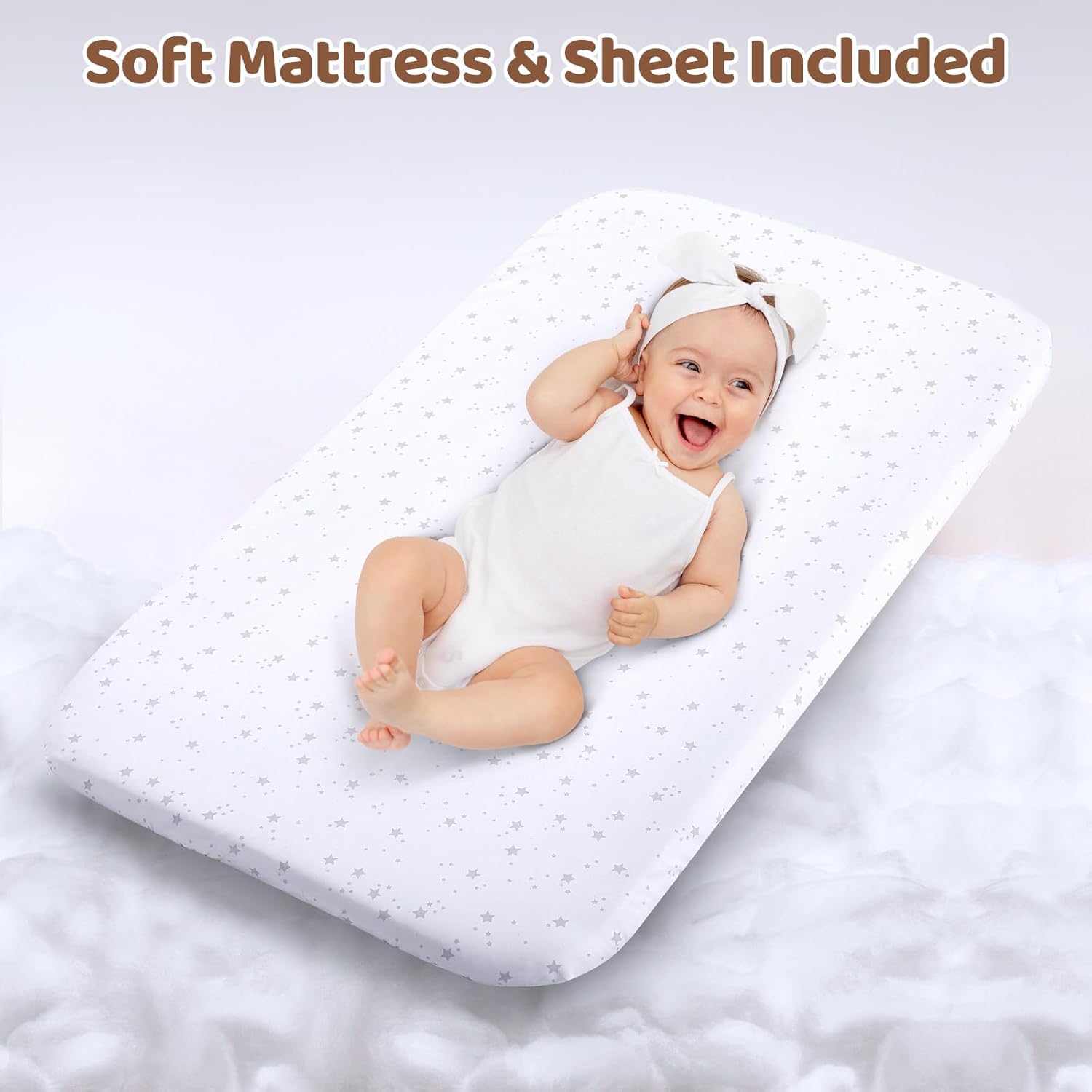 • 【Baby Bassinet with Wheels】 The baby bassinets bedside sleeper is equipped with four lockable 360°swiveled wheels, allowing for easy mobility around bedrooms and living rooms.