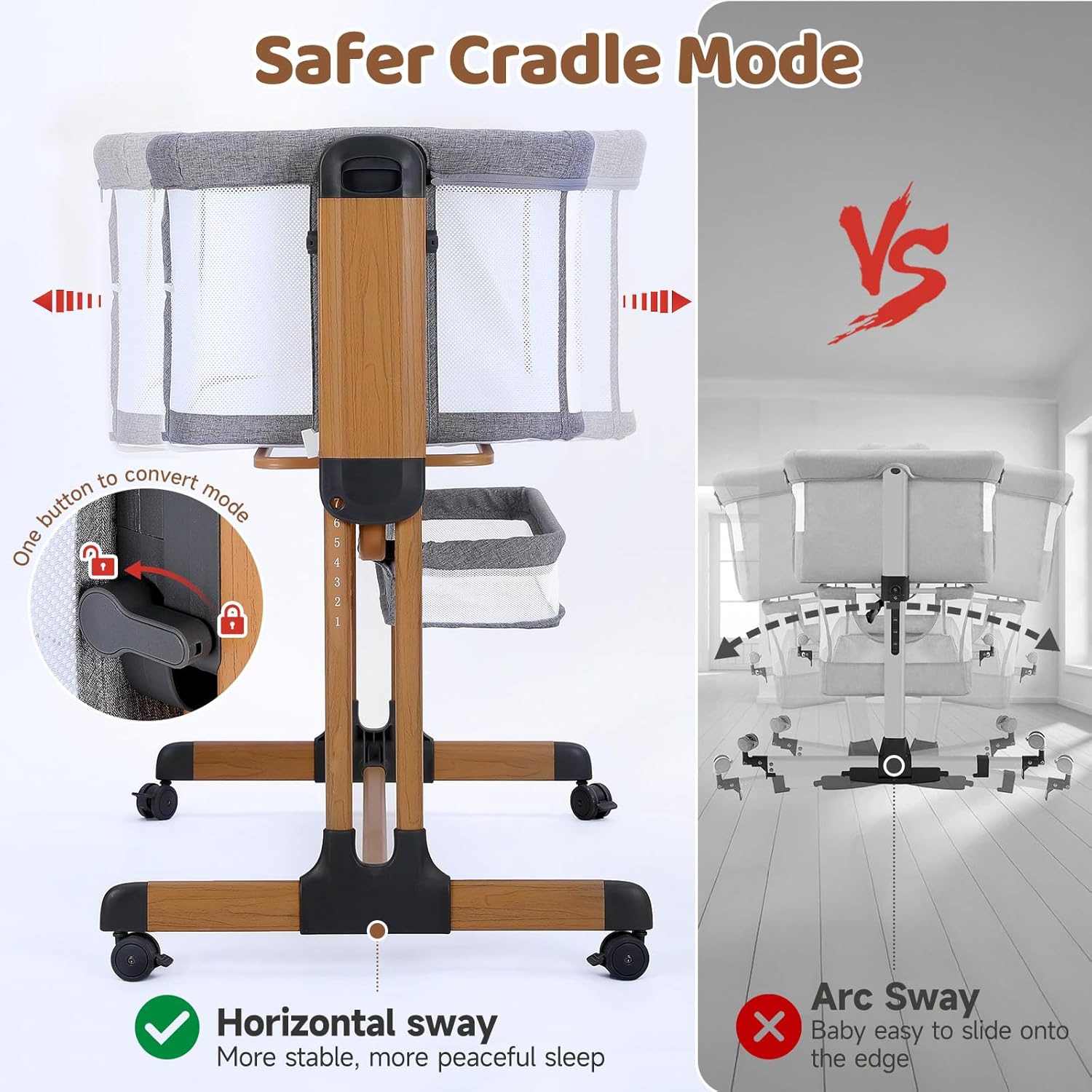 • 【Scientific Rocking Bassinet for Baby】 The cradle is designed to rock horizontally rather than in an arc, providing a safer and more stable sleeping environment for baby. The rocking bassinet allows parents to read a book or relax while soothing baby.
