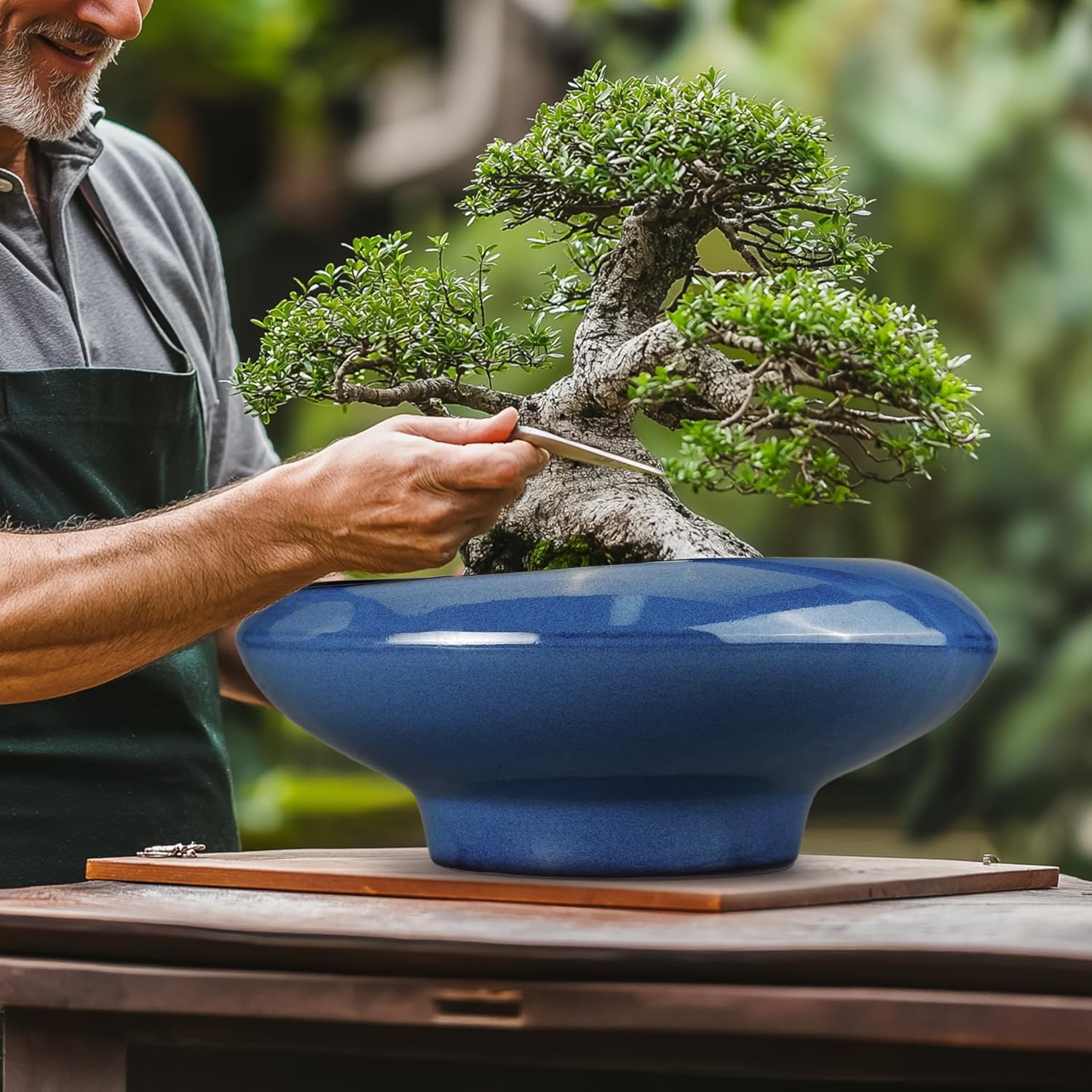 • Elegant Aesthetic: Featuring a beautiful blue glaze finish and unique artistic appearance, this bonsai pots combines practicality with style, a nice decor for table, windowsill, office, shelf, patio, deck, balcony, garden, any indoor or outdoor space