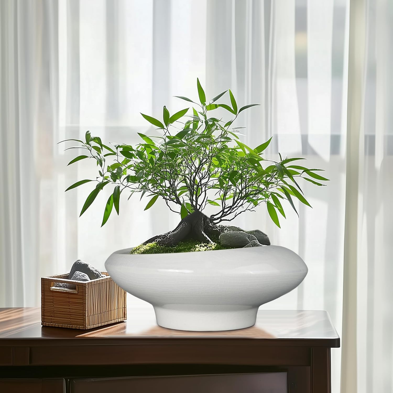• Elegant Aesthetic: Featuring a beautiful ice crackle glaze finish, this bonsai tree pot combines practicality with style, for table, windowsill, office, shelf, patio, deck, balcony, zen garden, any indoor or outdoor space