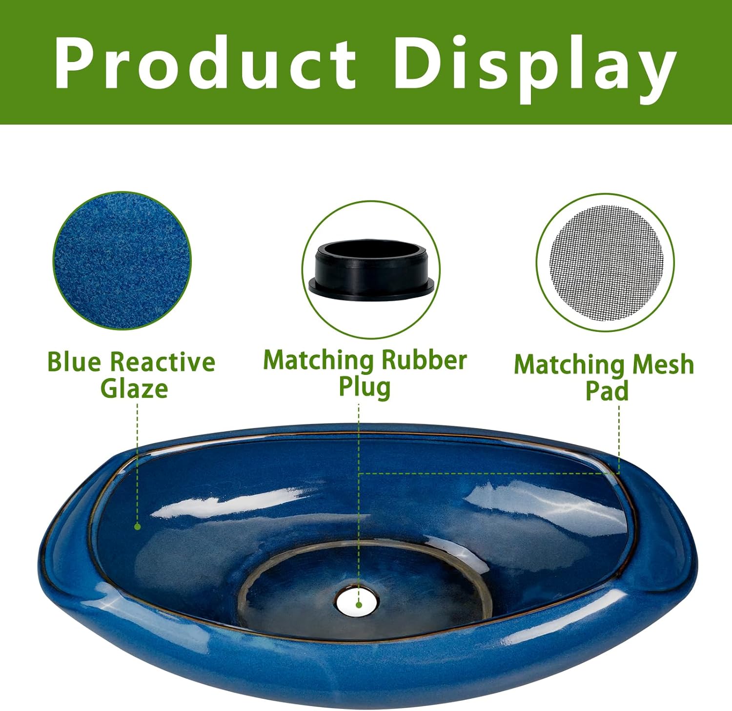 • Sufficiently Large Size: Our ceramic pot for plants is 18.6'' X 10.8'' X 5.6''. Packaging Includes: a bonsai planter, drainage plug, and mesh pad. Thoughtfully packaged to ensure your succulent pot arrives in complete condition