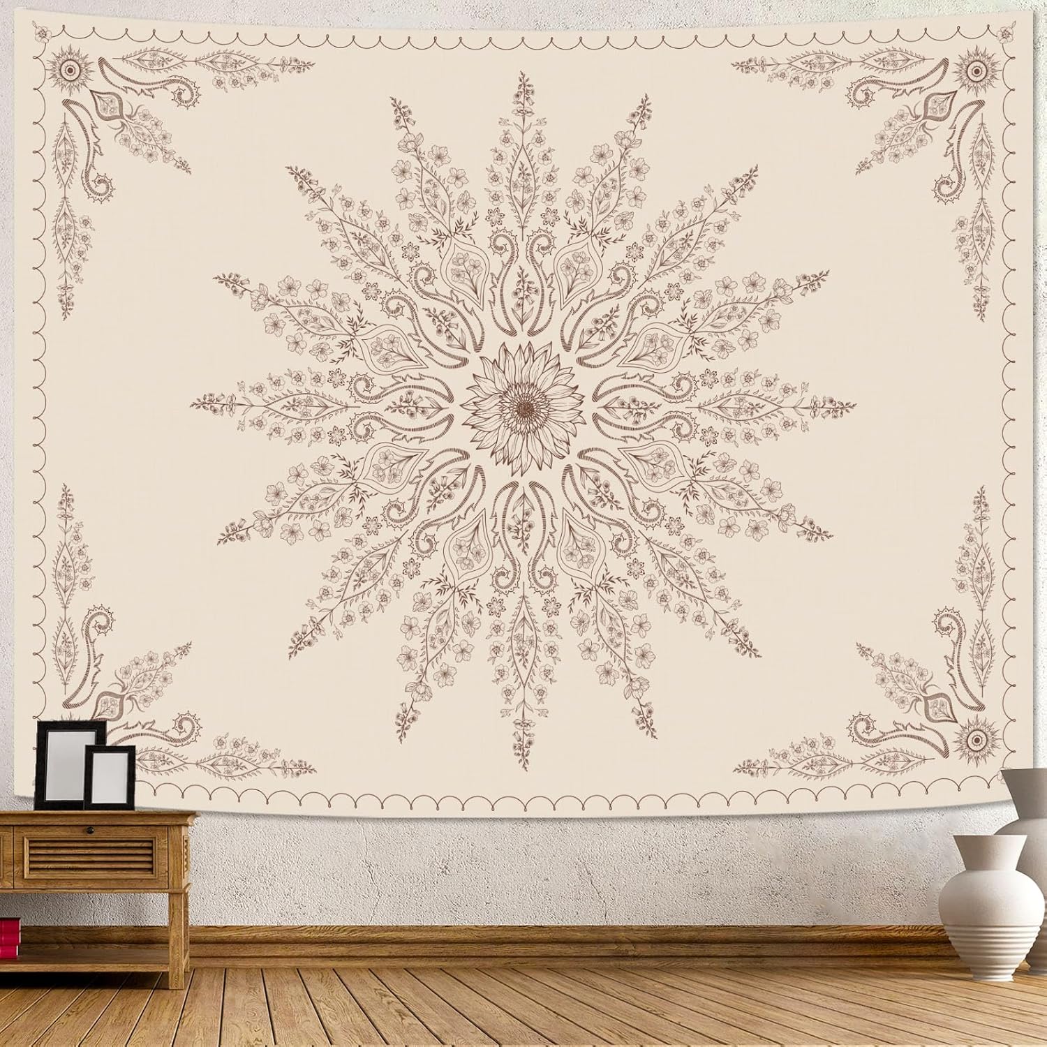 Fowocu Boho Floral Mandala Tapestry for Bedroom Aesthetic Bohemian Flower Wall Tapestry Beige Hippie Indian Large Tapestries Wall Hanging for Living Room Dorm Decor 80 x 60 Inch