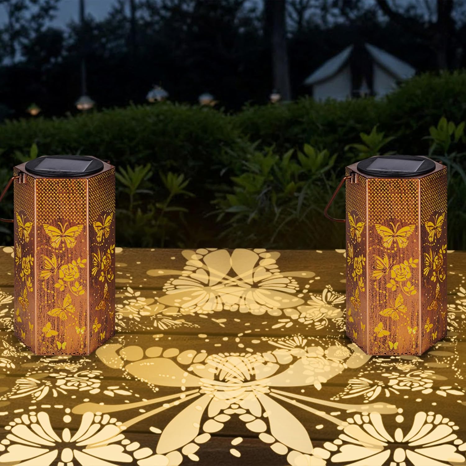• Imaginative Garden Decor - Eandisom Outdoor Solar Lanterns are crafted from upgraded durable metal, The retro appearance, with gold copper color and hollow out metal veneer, gorgeous color, casts bright and warm light in darkness, accompanied by gorgeous and graceful patterns, adding a beautiful atmosphere to the surrounding environment. Add illuminated charm to a garden, patio, porch and outdoor tabletop with these solar lantern lights. Make your outdoor spaces unique and amazing.