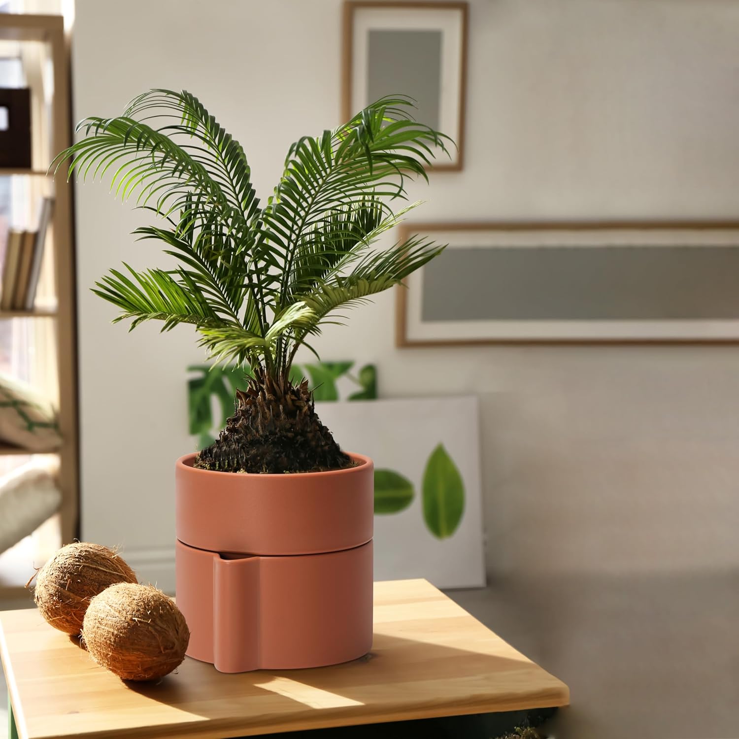 Phoenix Vine 6.5 Inch Self-Watering Planter Pot with Terracotta Insert, Deep Water Reservoir, and Ceramic-Alike BPA-Free Plastic Pot for Plant, Modern Planter for Houseplants, Terracotta, 53-A-S-3