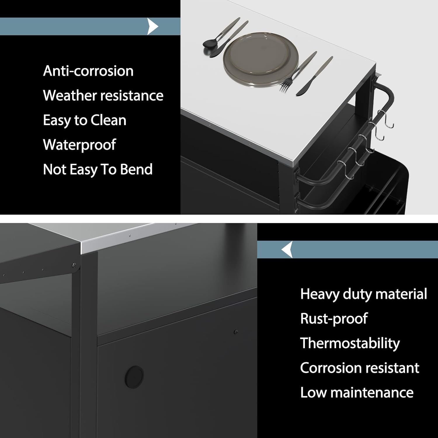 • MULTIFUNCTIONAL: This worktable can be used indoors as kitchen island table; outdoors as BBQ grilling table, grill cart, griddle stand, pizza oven stand, food prep station, potting bench and so on.