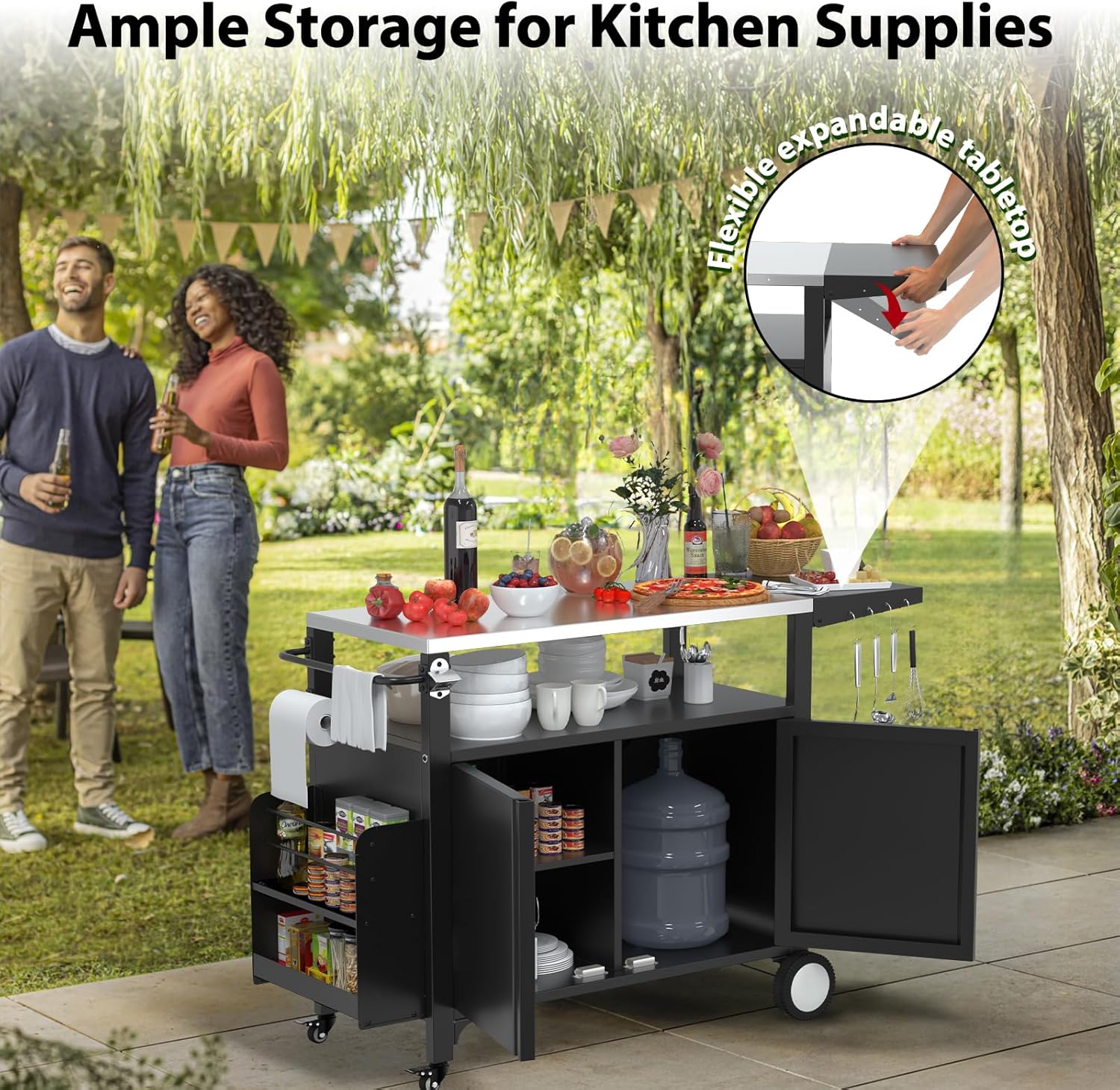 • LARGE DIMENSIONS: Open the second desktop on the side and you will get a tabletop measuring 50'' x 18.1'', provides an adequate workplace for most BBQ griddle grill or pizza oven, or preparing food aside when cooking. Besides the tabletop, you may also place food materials, seasonings, and accessories on the middle shelf.