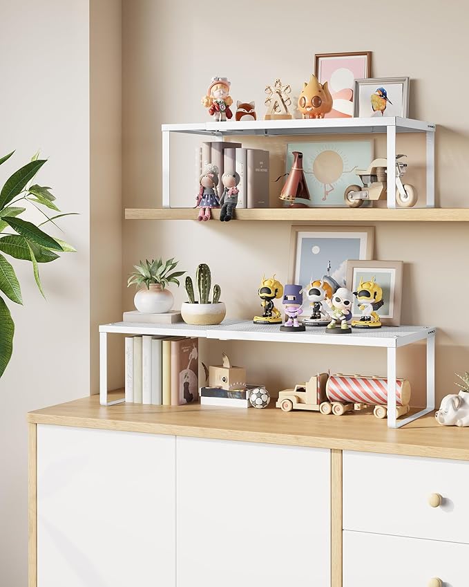 • 【VERSATILE】Place these cupboard shelves in kitchen cabinets or on countertops to store kitchen utensils, in the study to house office utensils and decorations, or in the entryway to keep your shoes off the floor