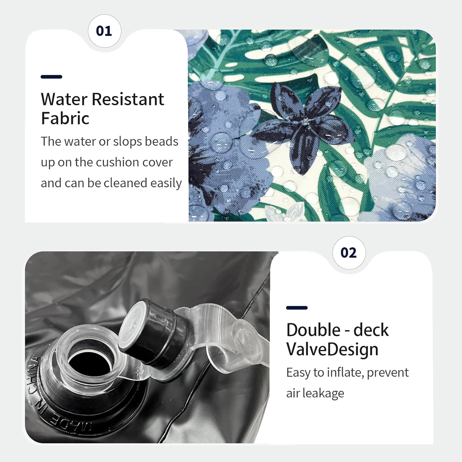 • 【EASY to INFLATE】 - Begin by placing the inflatable component into the cover prior to inflation. Utilize the foot pump to inflate it to approximately two-thirds of its size, then zip the cover halfway. Continue inflating until fully expanded and securely zip it closed. Ensure that the valve is properly sealed