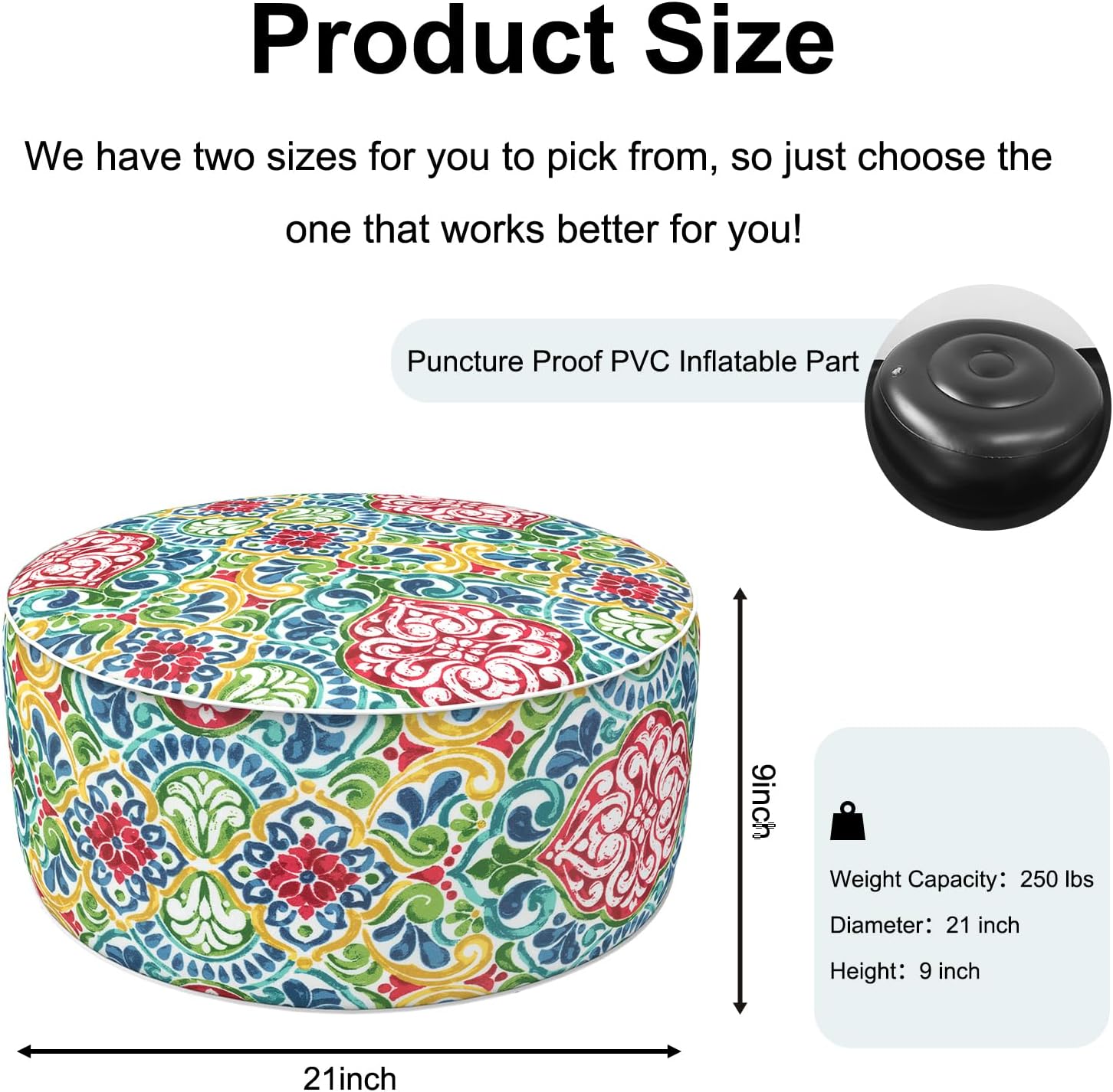 • 【PACKAGE INCLUDING】 - Foot pump not included and it NEEDS to be purchased SEPARATELY. The package contains one thick PVC explosion-proof liner inflatable ottoman inner with dimension D21 x H9 and one printed inflatable footrest stool cover