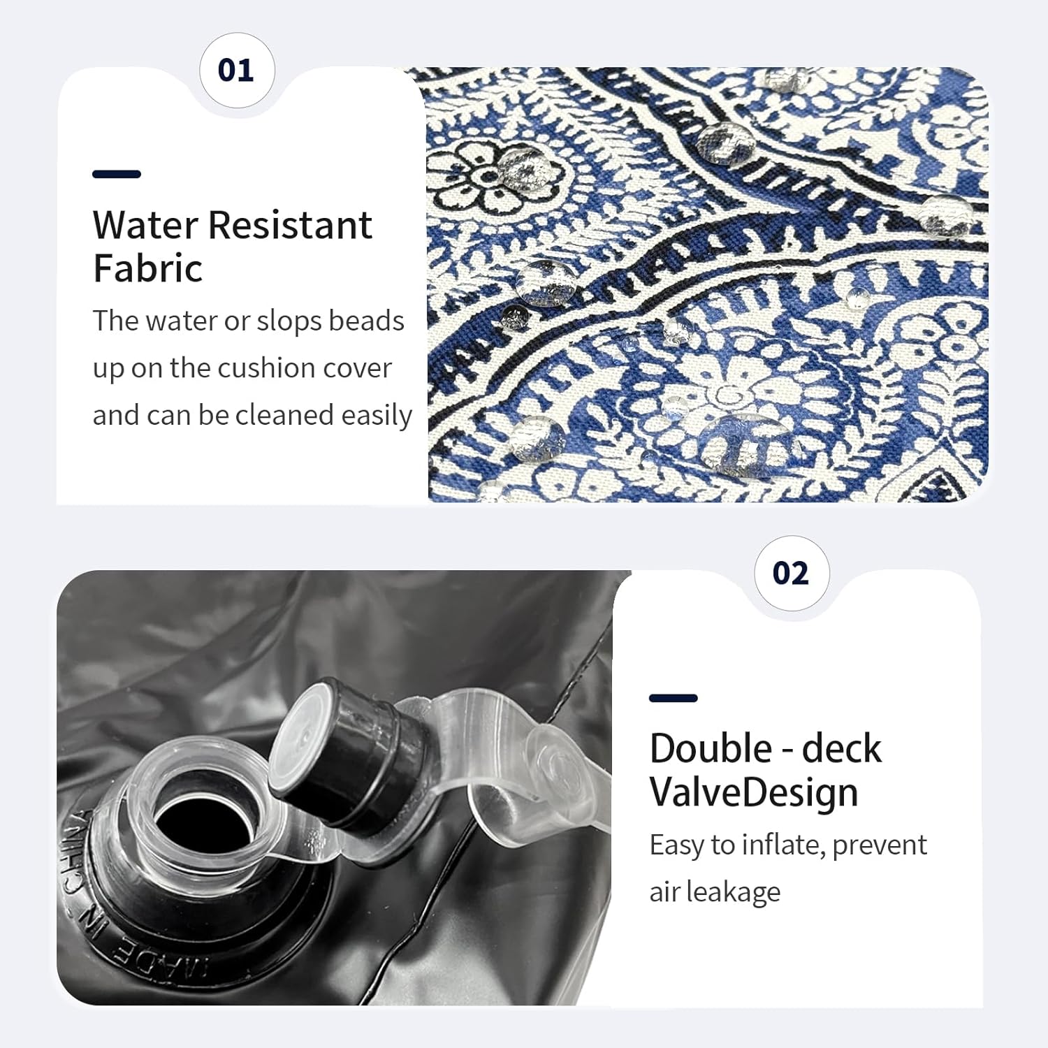 • 【EASY to INFLATE】 - Begin by placing the inflatable component into the cover prior to inflation. Utilize the foot pump to inflate it to approximately two-thirds of its size, then zip the cover halfway. Continue inflating until fully expanded and securely zip it closed. Ensure that the valve is properly sealed