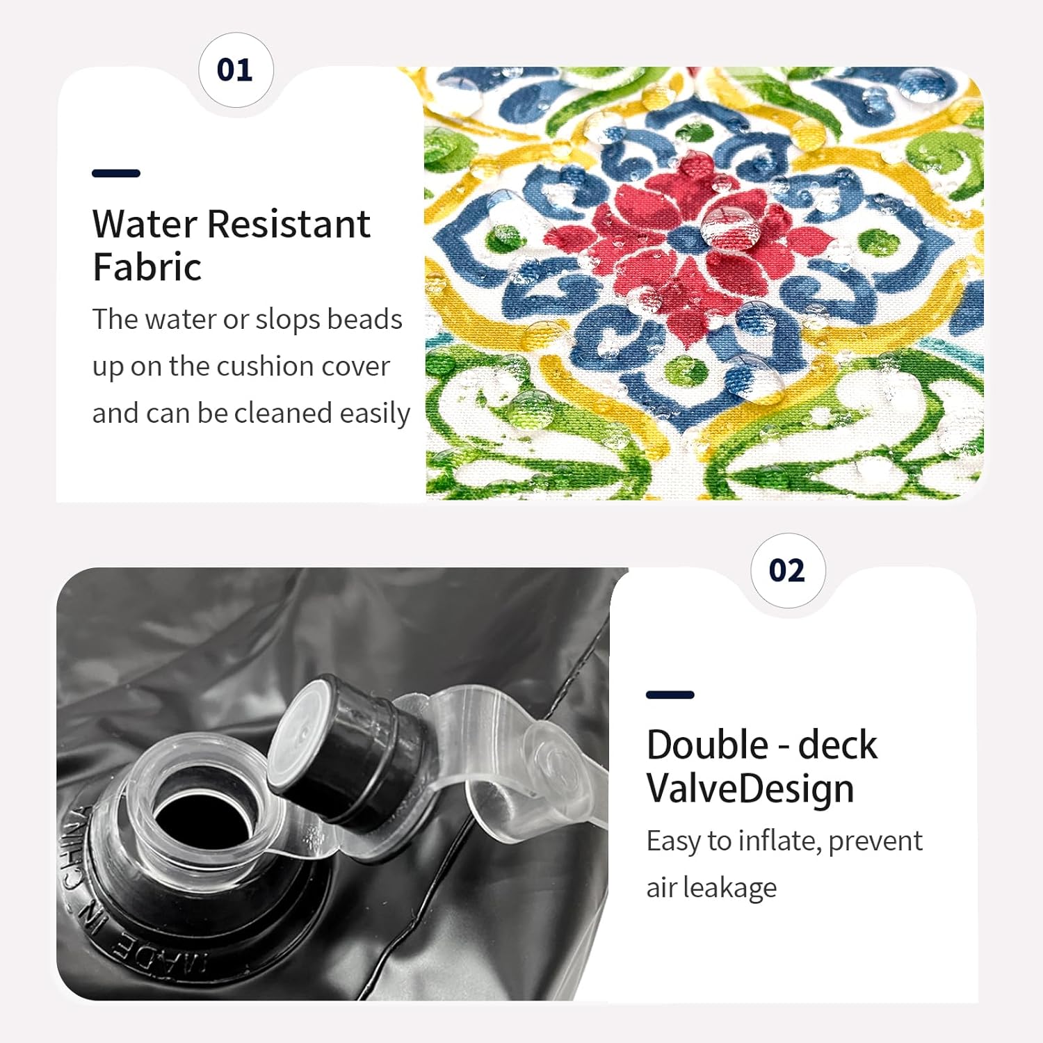 • 【EASY to INFLATE】 - Begin by placing the inflatable component into the cover prior to inflation. Utilize the foot pump to inflate it to approximately two-thirds of its size, then zip the cover halfway. Continue inflating until fully expanded and securely zip it closed. Ensure that the valve is properly sealed