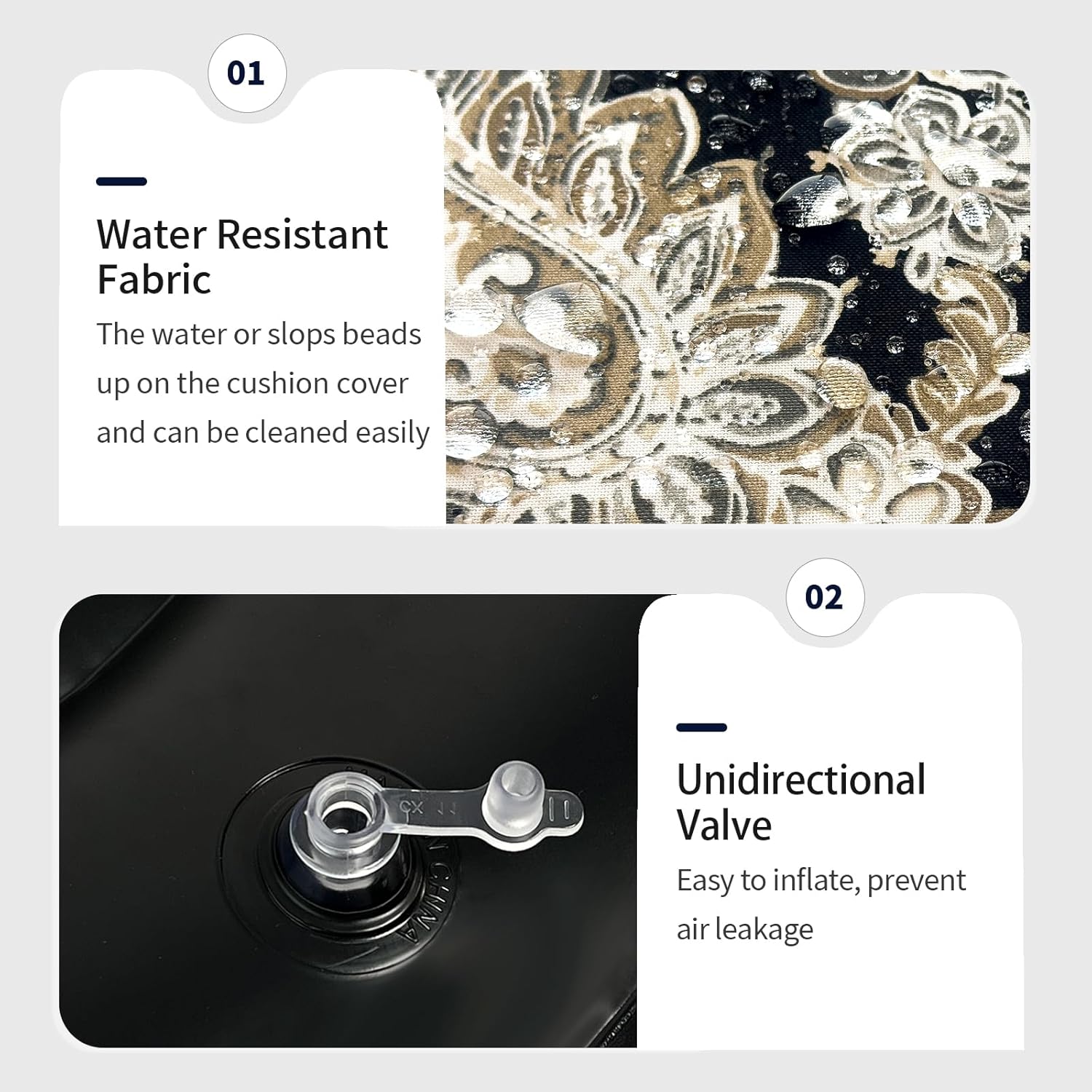 • 【EASY to INFLATE】 - Begin by placing the inflatable component into the cover prior to inflation. Utilize the foot pump to inflate it to approximately two-thirds of its size, then zip the cover halfway. Continue inflating until fully expanded and securely zip it closed. Ensure that the valve is properly sealed