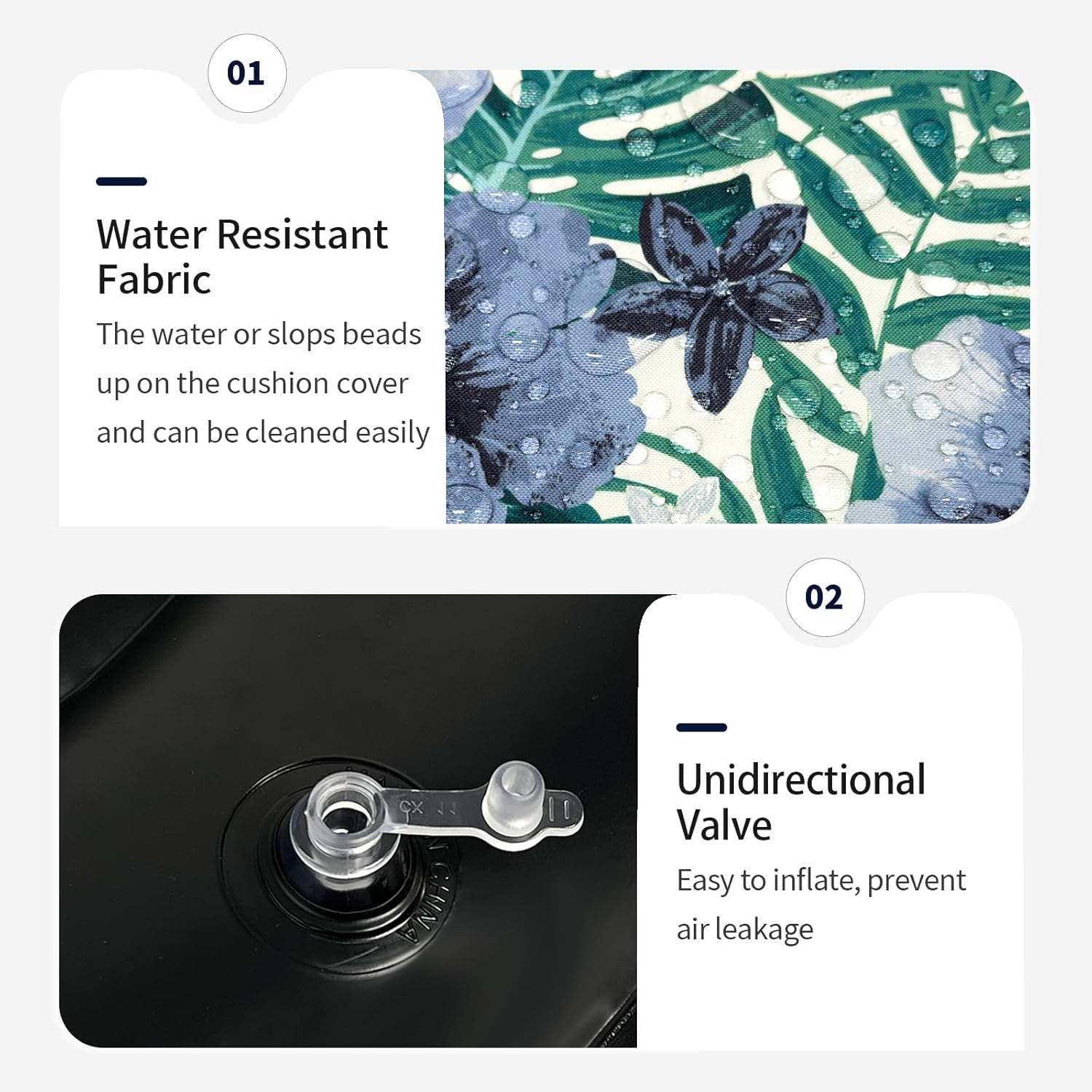 • 【EASY to INFLATE】 - Begin by placing the inflatable component into the cover prior to inflation. Utilize the foot pump to inflate it to approximately two-thirds of its size, then zip the cover halfway. Continue inflating until fully expanded and securely zip it closed. Ensure that the valve is properly sealed