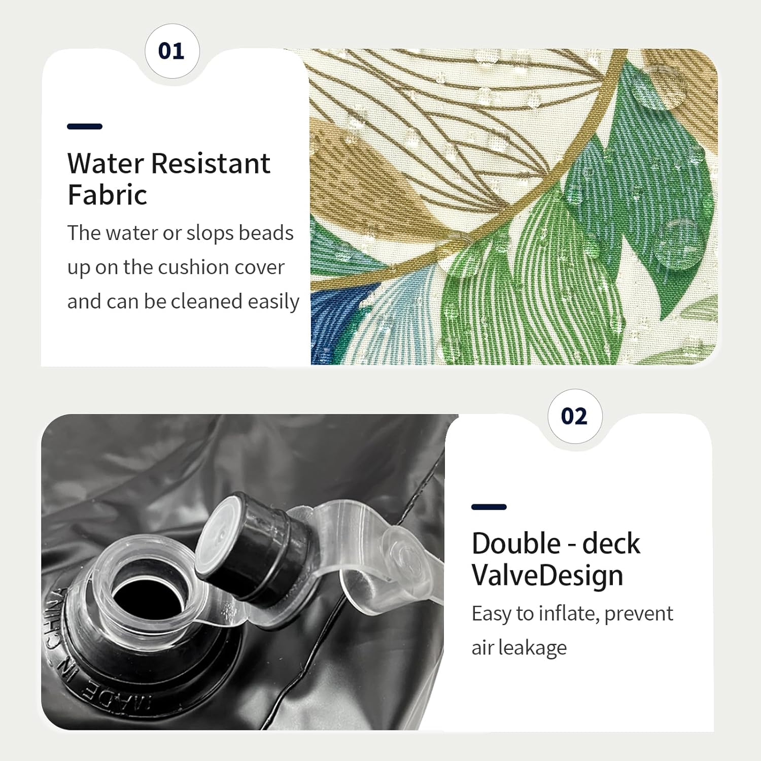 • 【EASY to INFLATE】 - Begin by placing the inflatable component into the cover prior to inflation. Utilize the foot pump to inflate it to approximately two-thirds of its size, then zip the cover halfway. Continue inflating until fully expanded and securely zip it closed. Ensure that the valve is properly sealed