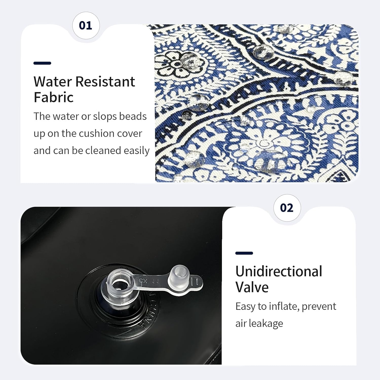 • 【EASY to INFLATE】 - Begin by placing the inflatable component into the cover prior to inflation. Utilize the foot pump to inflate it to approximately two-thirds of its size, then zip the cover halfway. Continue inflating until fully expanded and securely zip it closed. Ensure that the valve is properly sealed