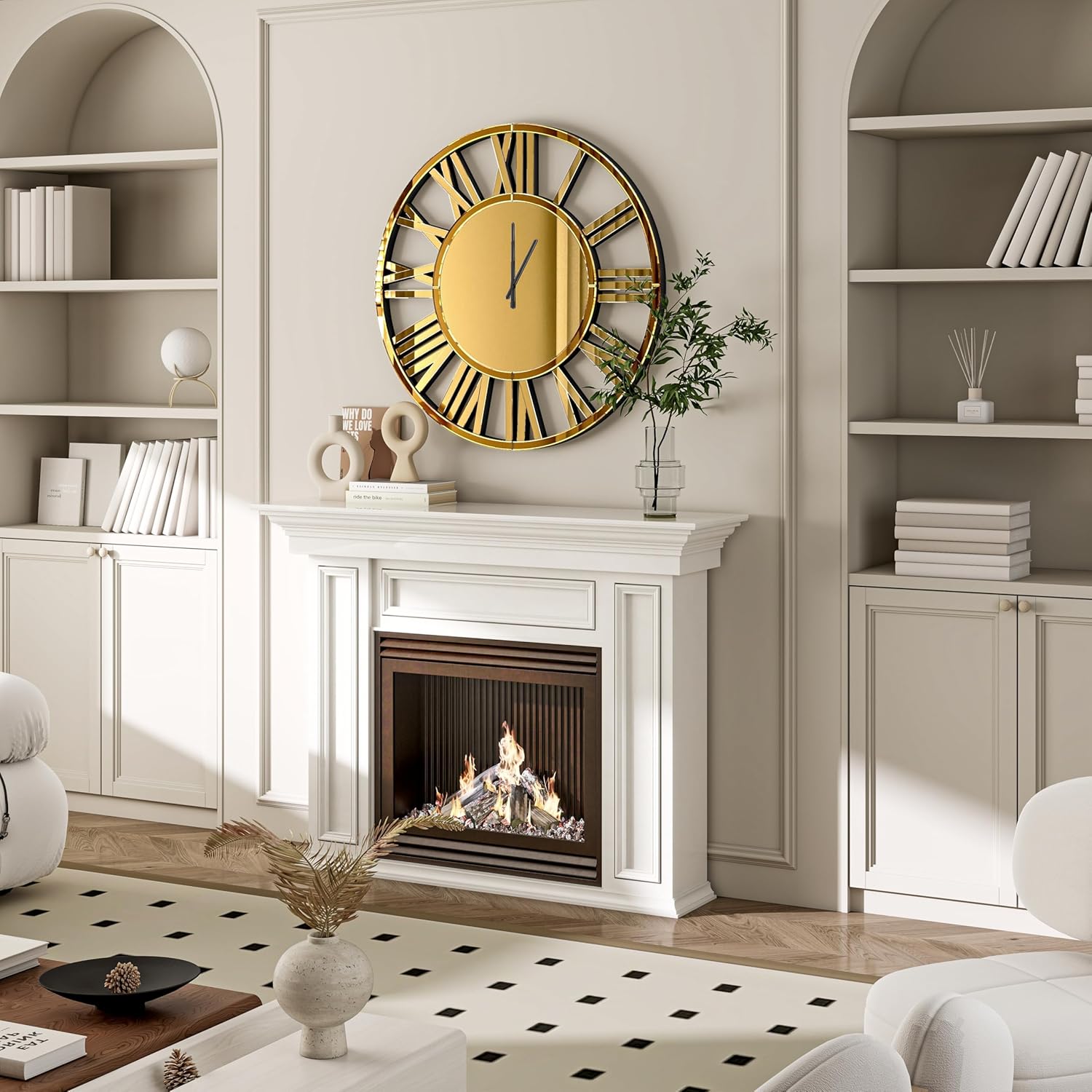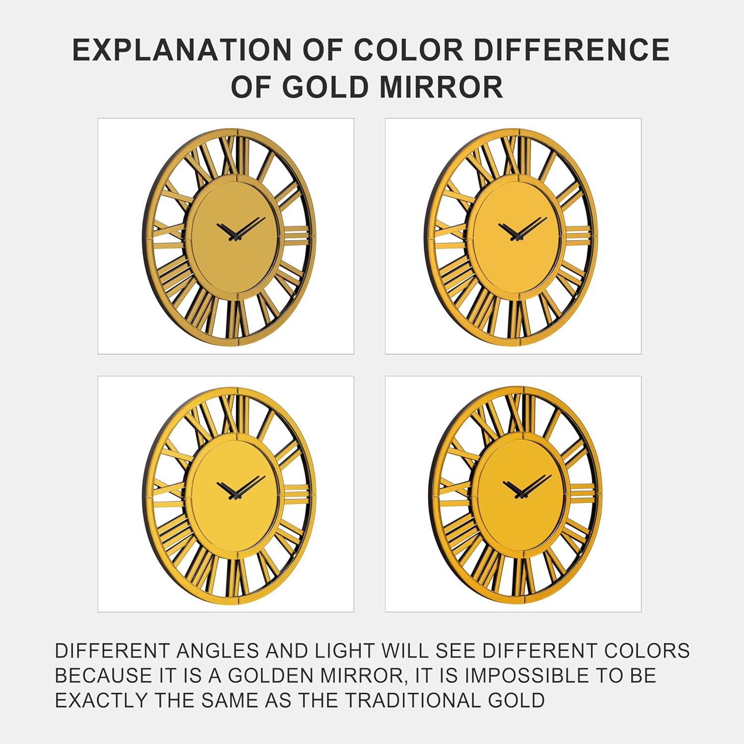 • 【Premium Materials】Constructed with a 4mm thick gold mirror and sturdy MDF backing, the wall clock is equipped with a silent sweep mechanism for accurate timekeeping. The one-piece movement cover safeguards the mechanism, while two robust hooks guarantee the stability of this large wall clock for enduring use.