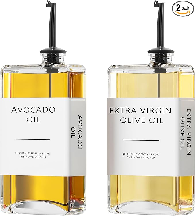 • Premium Quality: Made from high-quality glass, this oil dispenser bottle set is designed for durability and adds a touch of style to your kitchen.
